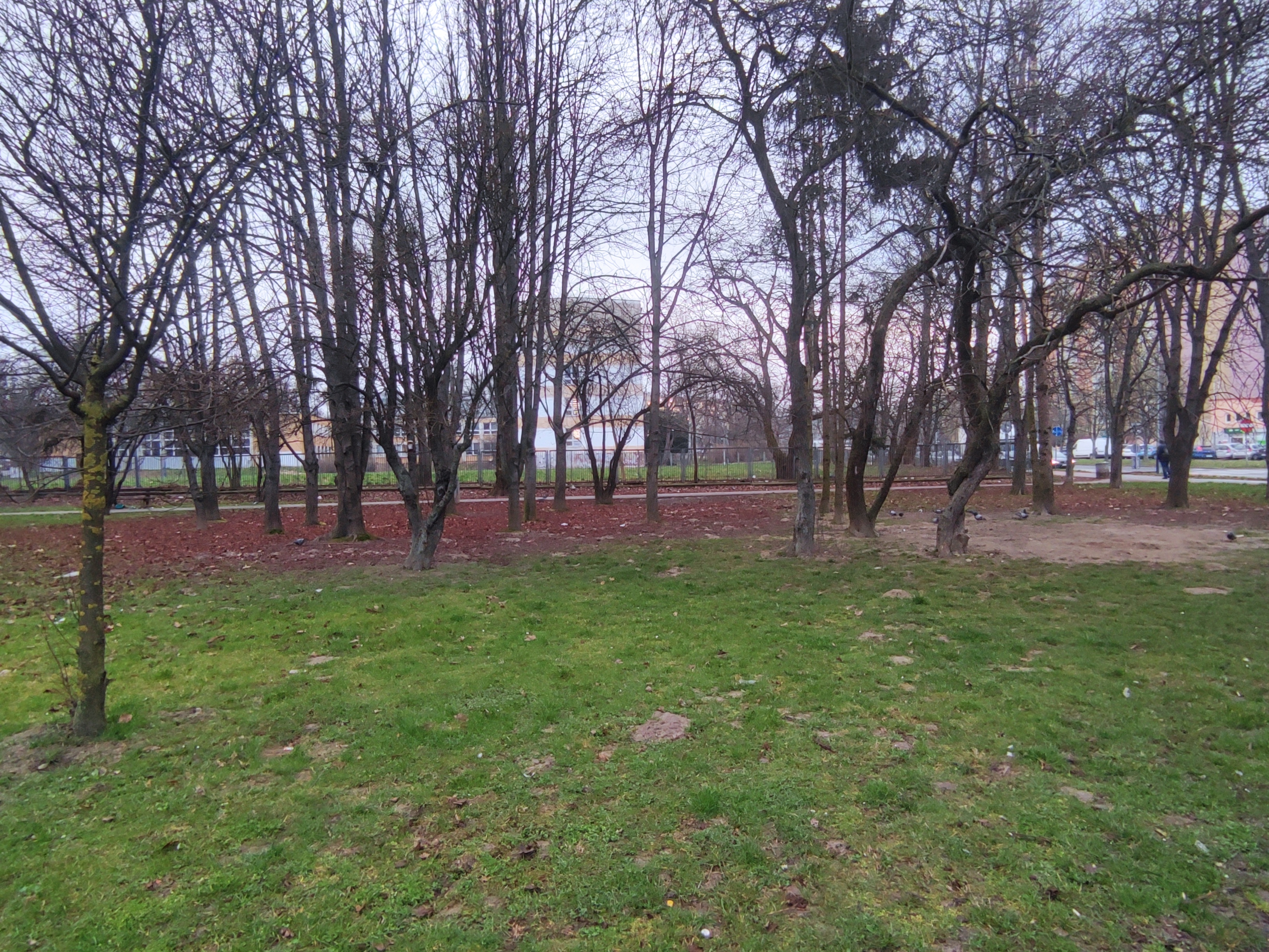 Obecnie działkę porasta trawa oraz drzewa (głównie kasztanowce), które w ramach realizowanych prac powinny zostać zachowane. Po realizacji projektu przyjemnie będzie można spędzać pod nimi czas.