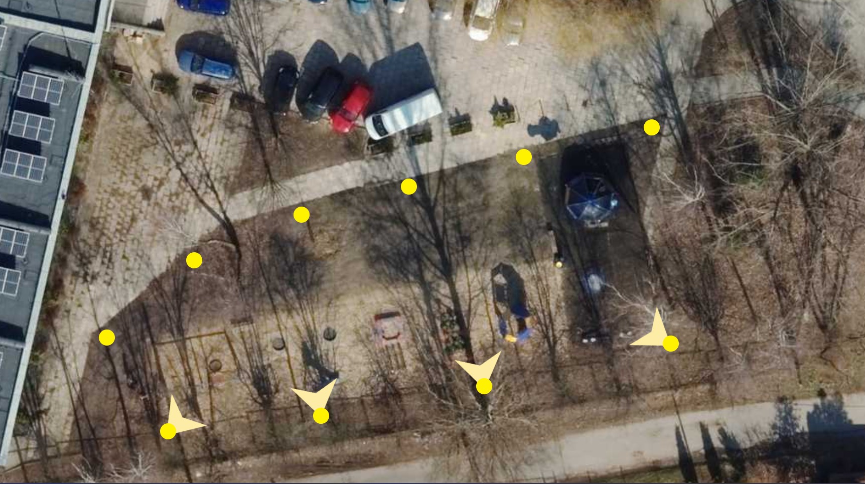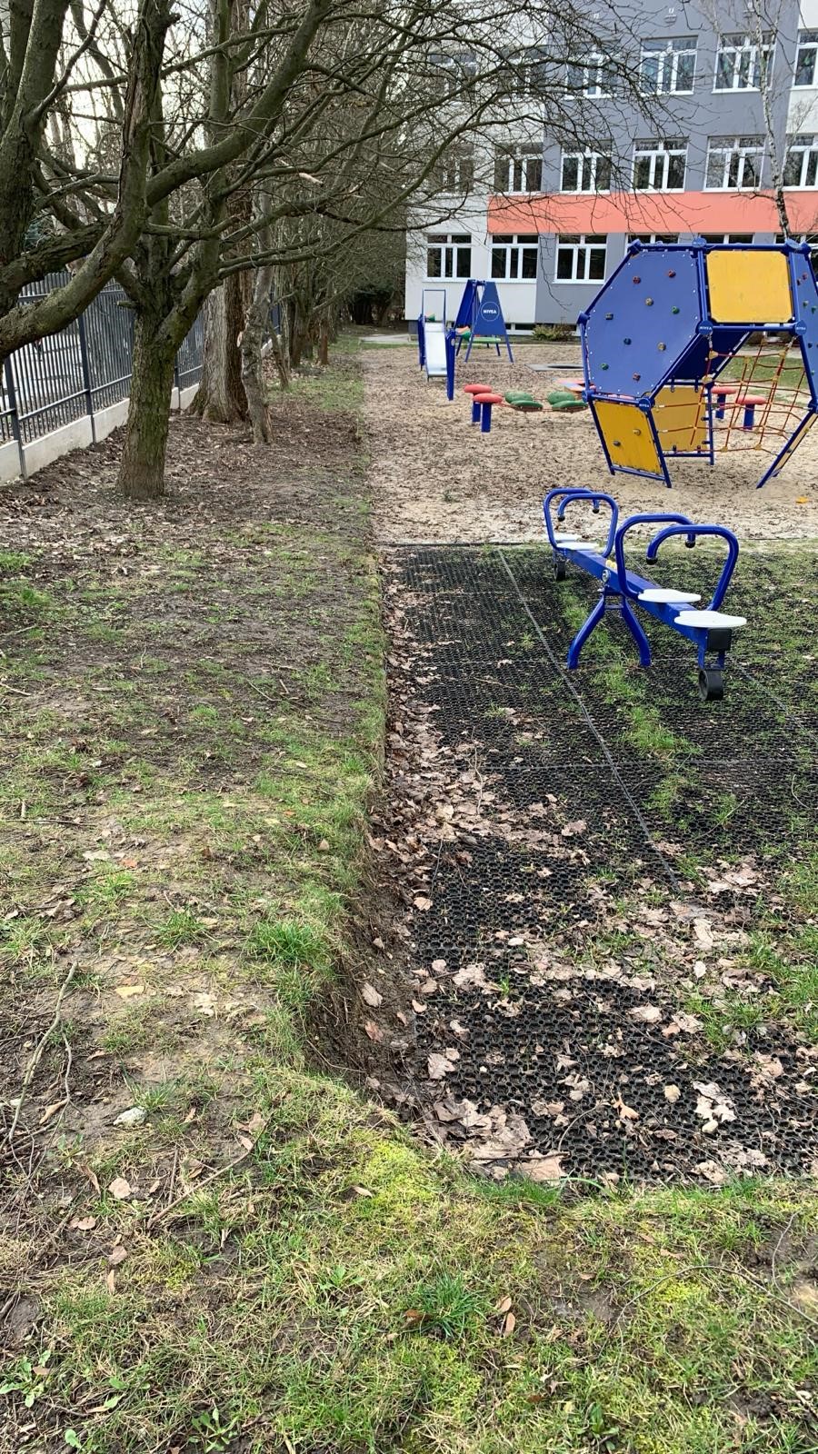 - montaż 4-5 lamp kierunkowych (zależnie od potrzeb i oceny specjalistów) po stronie południowej placu zabaw (między ogrodzeniem szkoły, a placem zabaw) dających światło w kierunku placu zabaw,