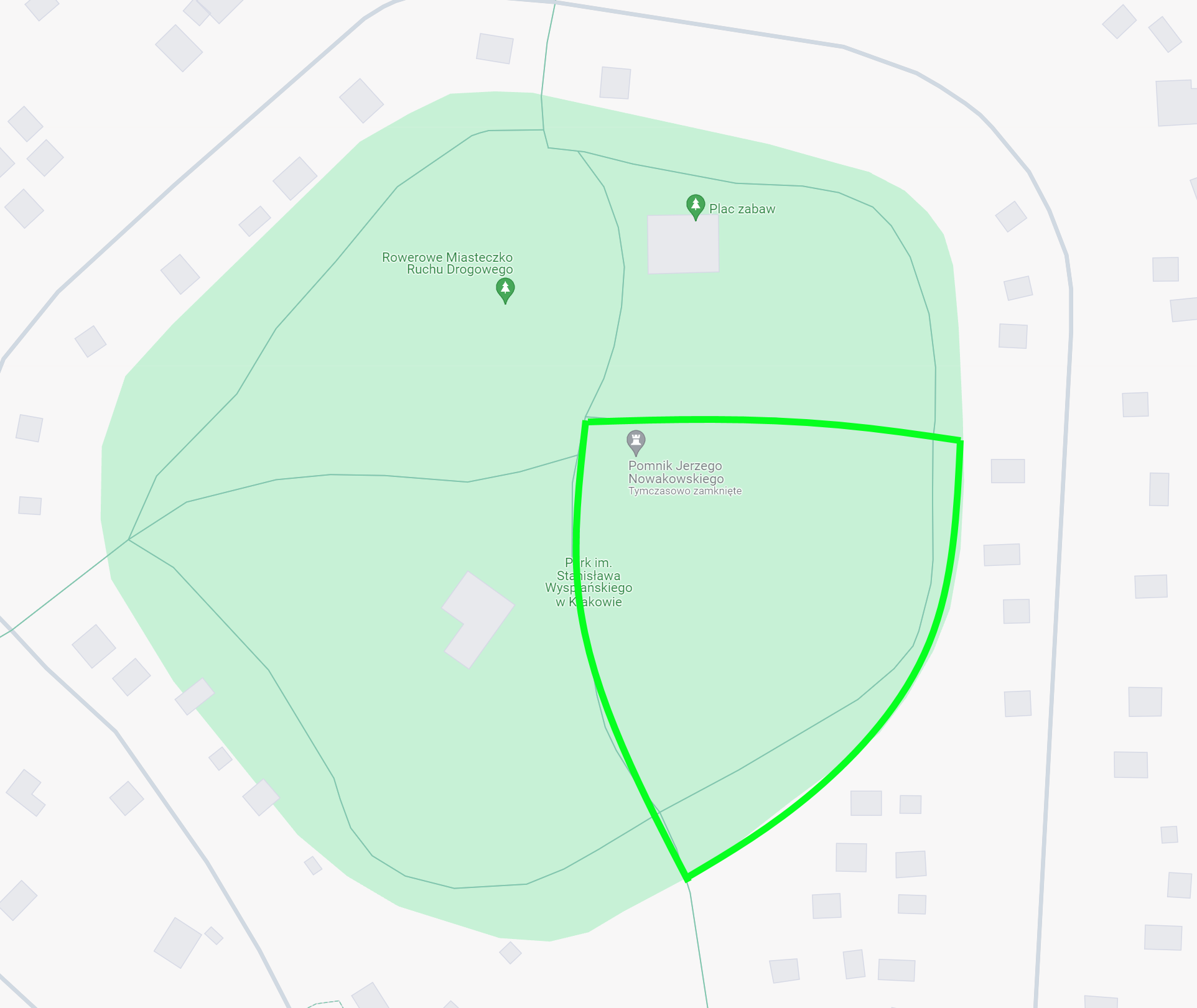 Przeznaczmy południowo-wschodnią część parku im. Wyspiańskiego na obcowanie z zielenią, tak by ta część parku była zdominowana przez zieleń, a nie przez urządzenia rekreacyjne.