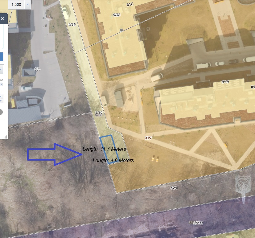 Główna lokalizacja: południowa granica działki 9/20, obręb 54, jednostka ewidencyjna Nowa Huta (126103_9.0054.9/20)