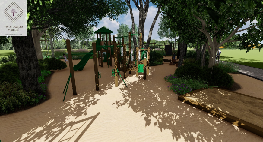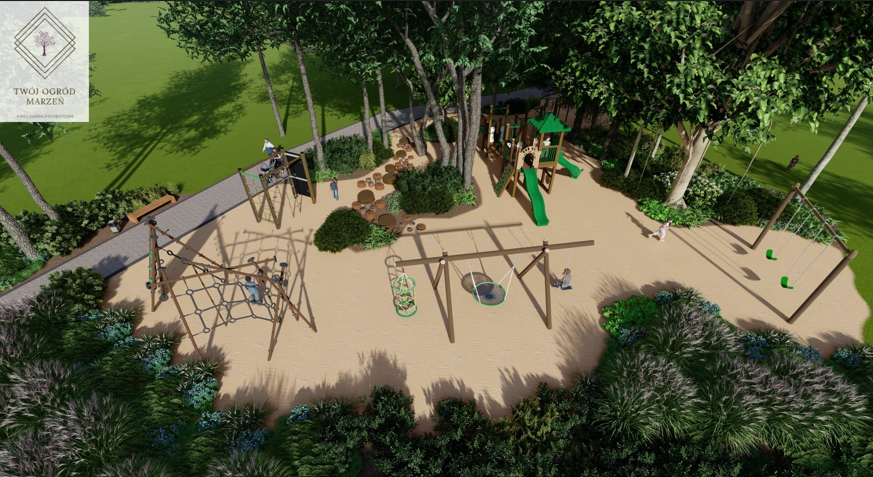 Cały plac zabaw ma powstać z poszanowaniem istniejących drzew, które mają stanowić jego wielki atut w upalne, letnie dni.