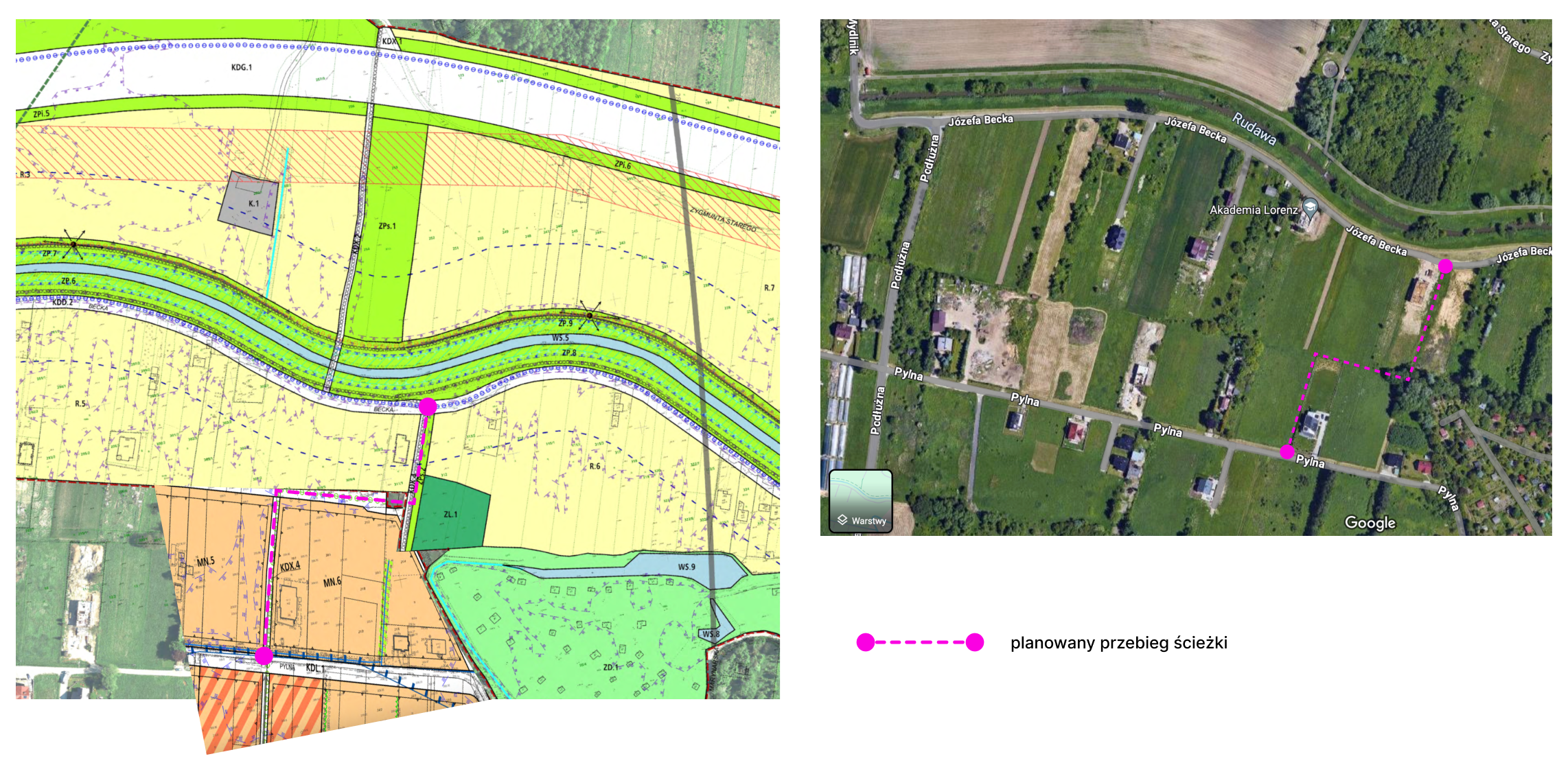Celem I-szego etapu projektu jest stworzenie bezpiecznej ścieżki pieszo-rowerowej łączącej ścieżkę na wałach Rudawy z ulicą Pylną zgodnie z obowiązującym planem zagospodarowania przestrzennego. Całościowy przebieg ścieżki ma być łącznikiem pieszo-rowerowym pomiędzy Lasem Wolskim a Młynówką Królewską. W ramach projektu BO chcielibyśmy aby powstała pierwsza część zamierzonej ścieżki tj. pomiędzy ul. Becka a ul. Pylną.