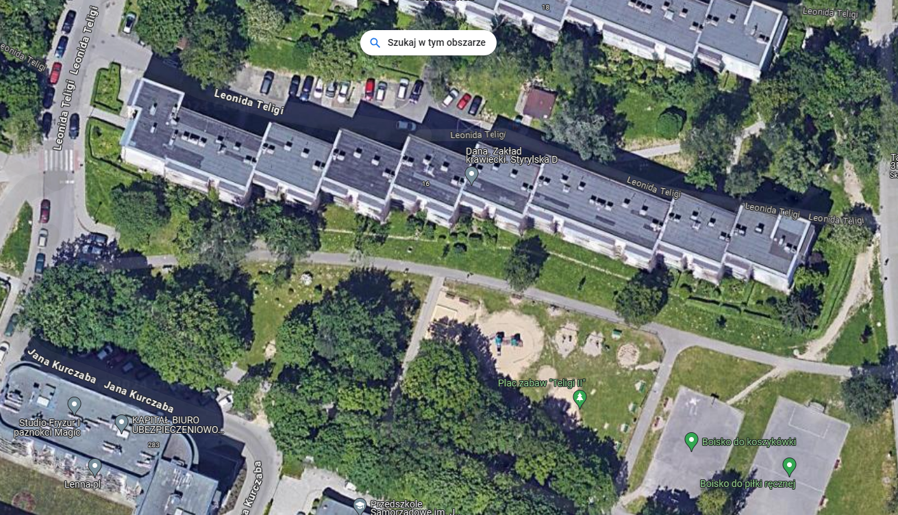 Główna lokalizacja: alejka spacerowa wzdłuż bloku Teligi 16, dz, P-55, 303/35