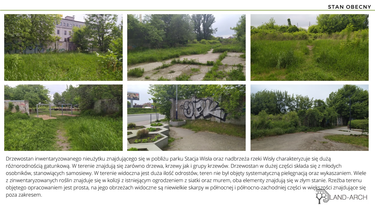 Od około dekady obserwujemy dynamiczny rozwój Zabłocia. W parze z ogromnym przyrostem ludności nie idą niestety nowe usługi publiczne. Powiększenie Parku Stacja-Wisła jest obecnie najłatwiej i najszybciej dostępną możliwością polepszenia bytu mieszkańców tego obszaru. W najbliższej okolicy mocno brakuje miejsc zabaw dla dzieci oraz terenów rekreacyjnych dla dorosłych. Najbliższe w pełni rozbudowane i wyposażone publiczne place zabaw dla dzieci znajdują się przy galerii Kazimierz (1,1km), w parku Bednarskiego (1,4 km), parku Dąbie (2km). Zabłocie, w związku z niedawną rewitalizacją i przekształceniem dzielnicy z przemysłowej w mieszkalną, potrzebuje tego typu miejsc. Lokalna społeczność nie ma gdzie aktywnie spędzać czasu na wolnym powietrzu.
