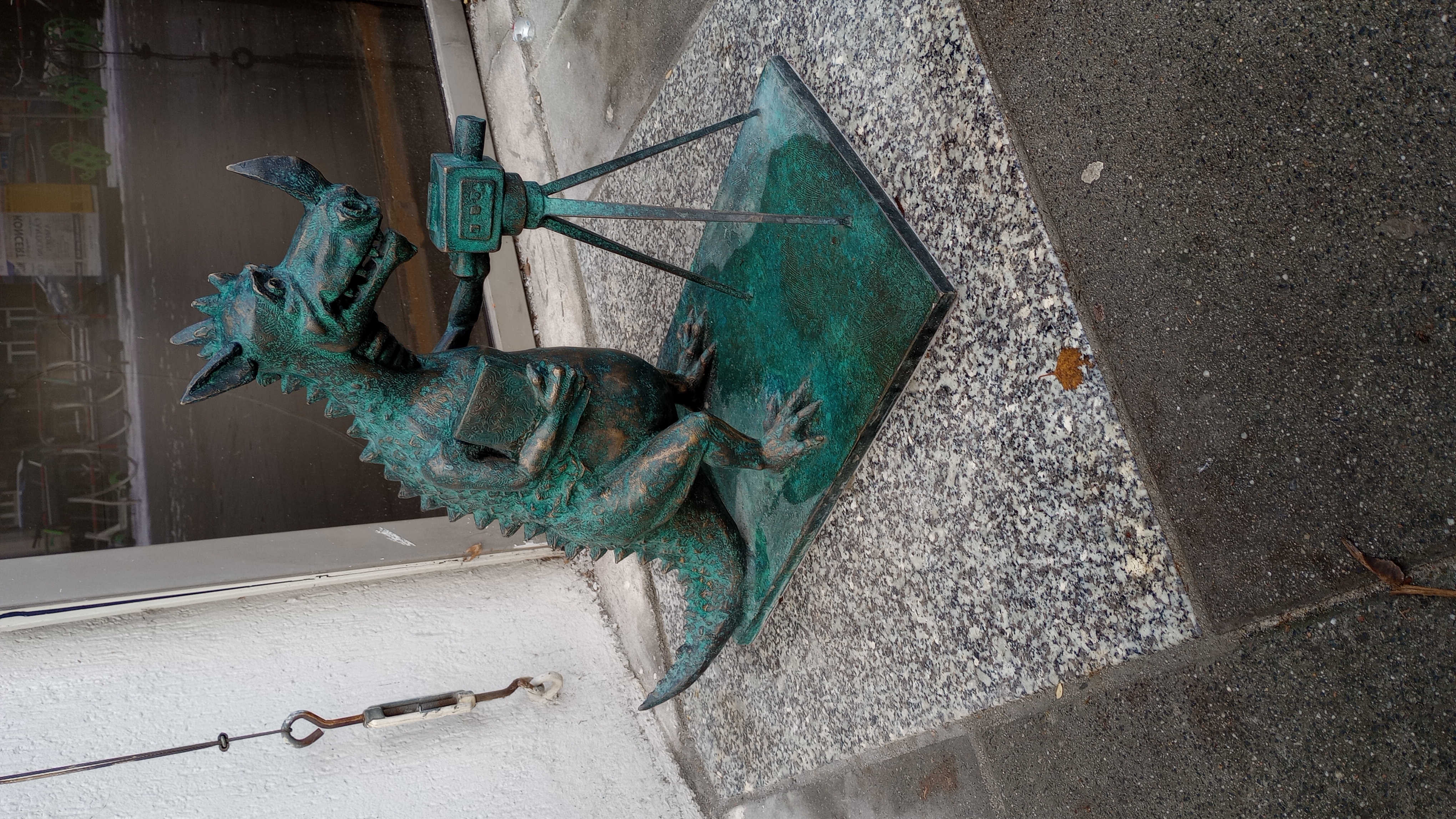 1) Smok Handlarz - 50.058510, 19.949345 - działka 288/5, obręb 17, jednostka ewidencyjna Śródmieście Na skraju zieleńca, obok chodnika, na wprost wejścia do gmachu Hali Targowej przy ulicy Grzegórzeckiej.