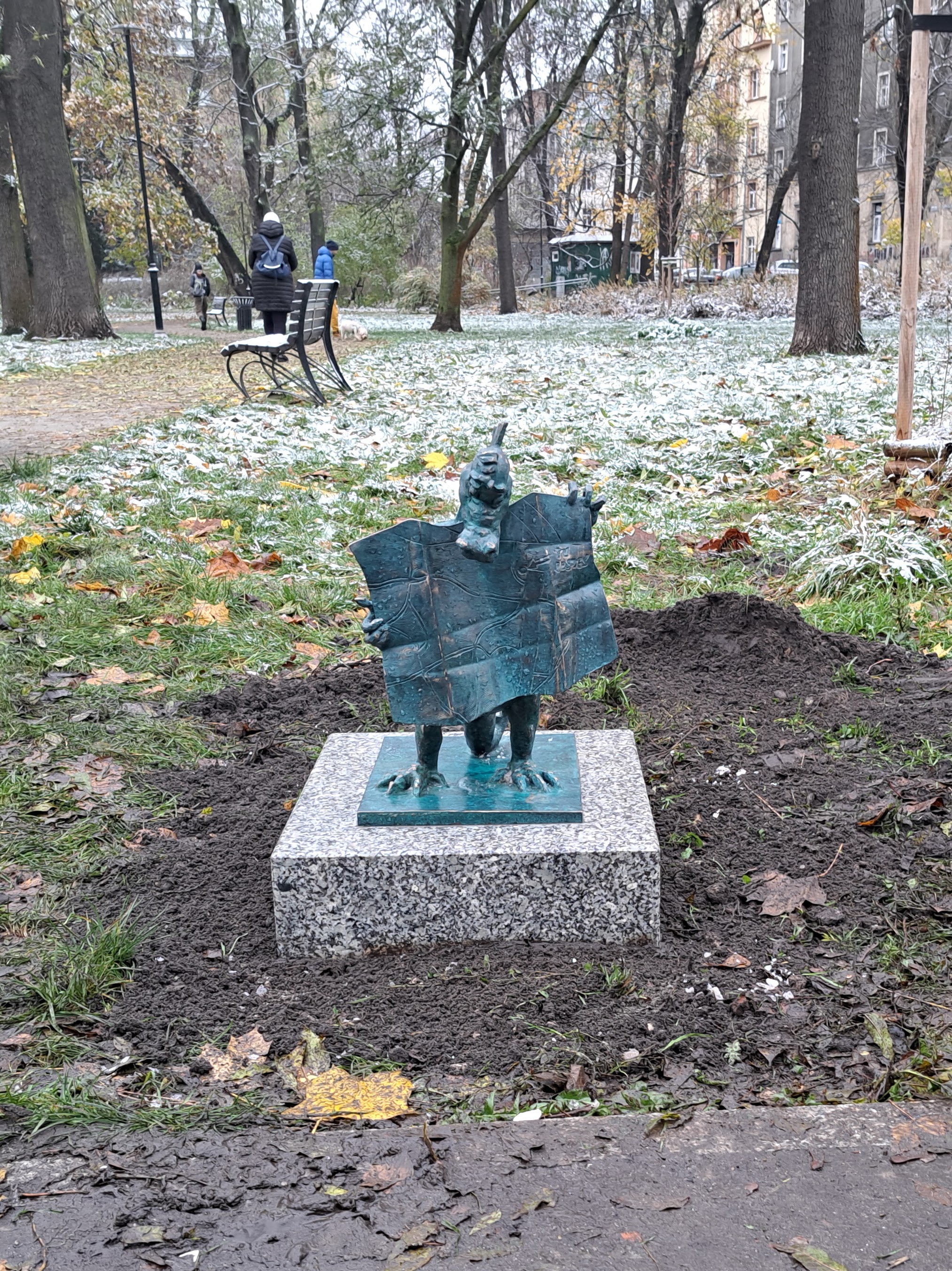 3) Smok Spacerowicz - 50.054695, 19.976320 - działka 388, obręb 16, jednostka ewidencyjna Śródmieście na skraju zieleńca, przy ścieżce wzdłuż bulwarów, przy ul. Ofiar Dąbia, nieopodal stopnia wodnego Dąbie