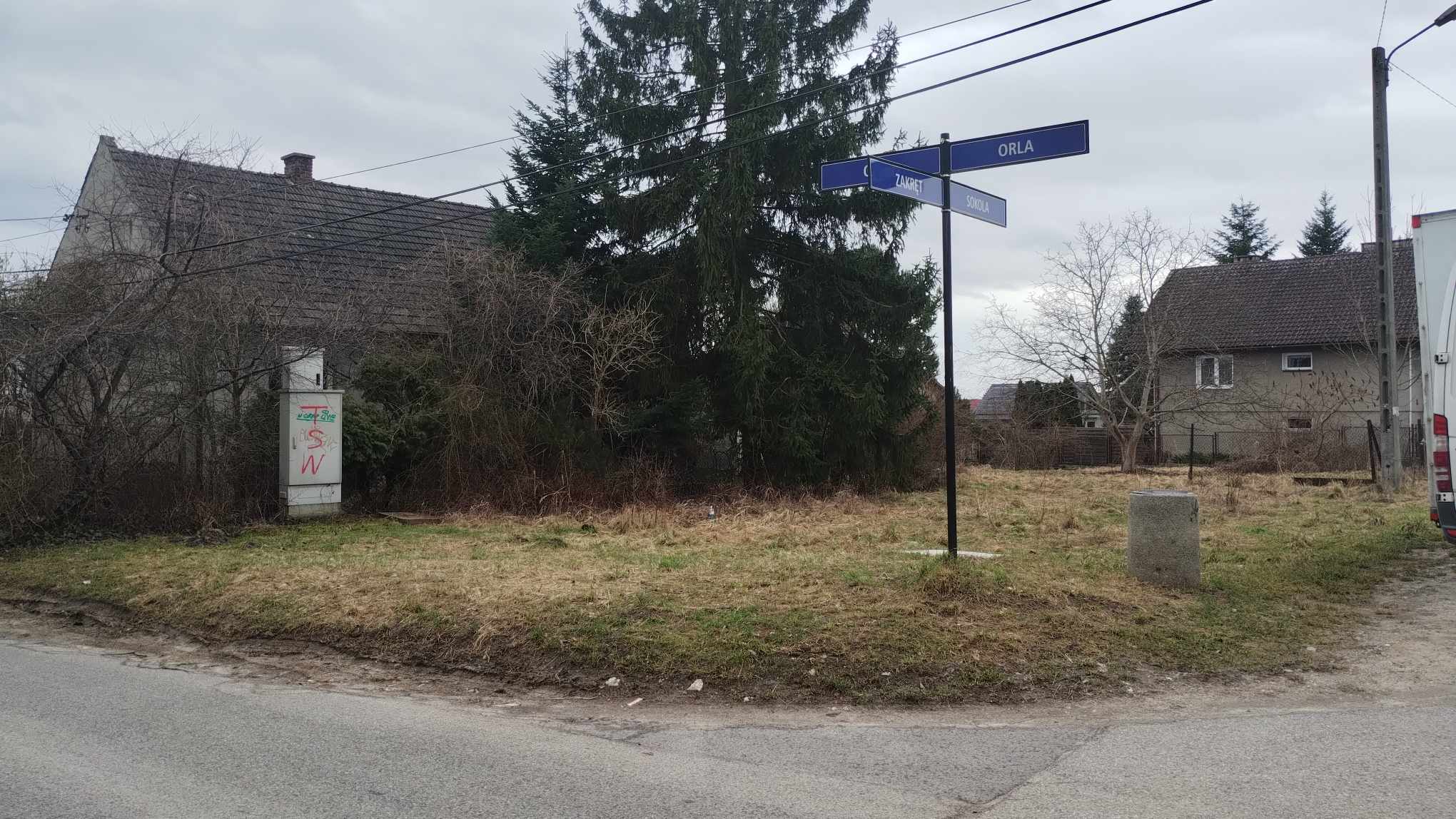 Proponuję zagospodarowanie małej działki przy zbiegu ulic Orlej/Sokolej/Zakręt na Ogród Społeczny.