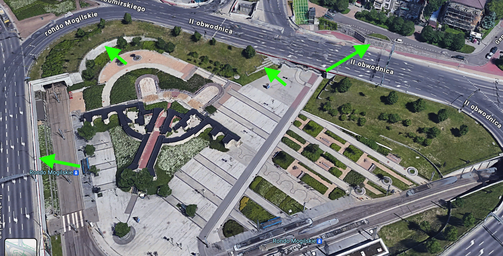 Posadźmy roślinność pnącą, płożącą, zwisającą, bądź załóżmy kwietniki, rabaty bylinowe lub kompozycje traw ozdobnych na dolnym poziomie Ronda Mogilskiego. Zapobiegniemy nagrzewaniu się betonu do nieludzkich temperatur, poprawimy powietrze i zwiększymy retencję deszczówki.