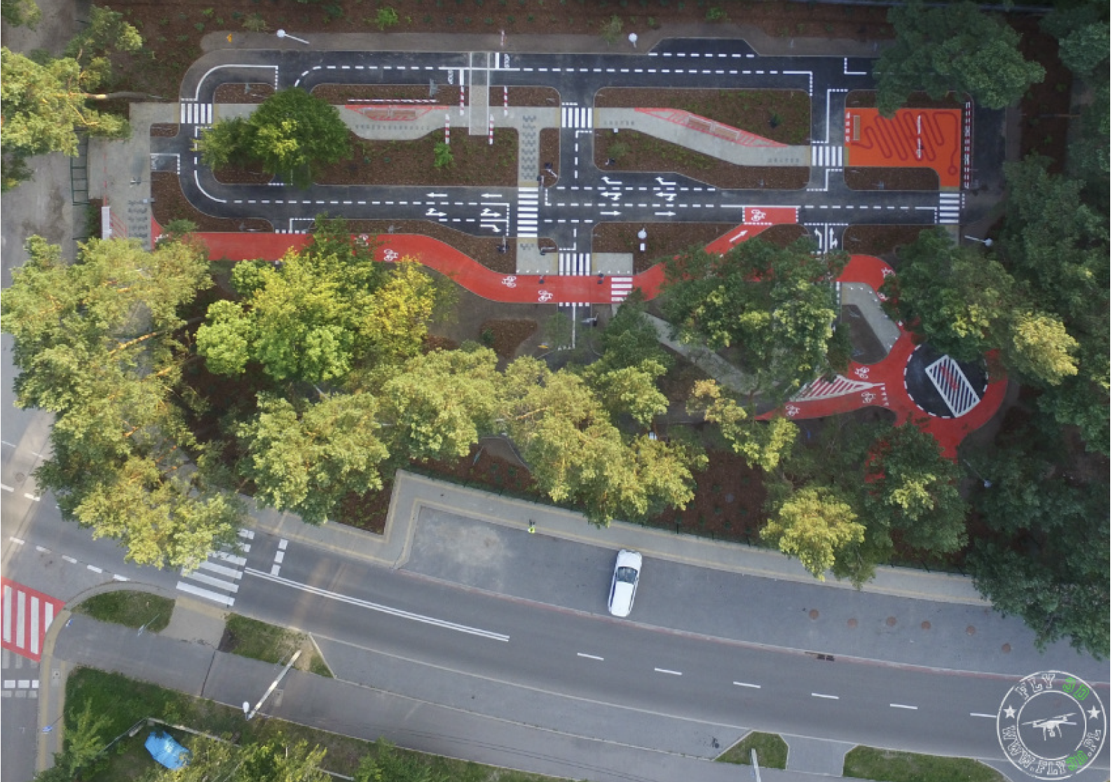 - nowe alejki w formie zminiaturyzowanych ulic z oznakowaniem zarówno poziomym jak i pionowym, sygnalizacją