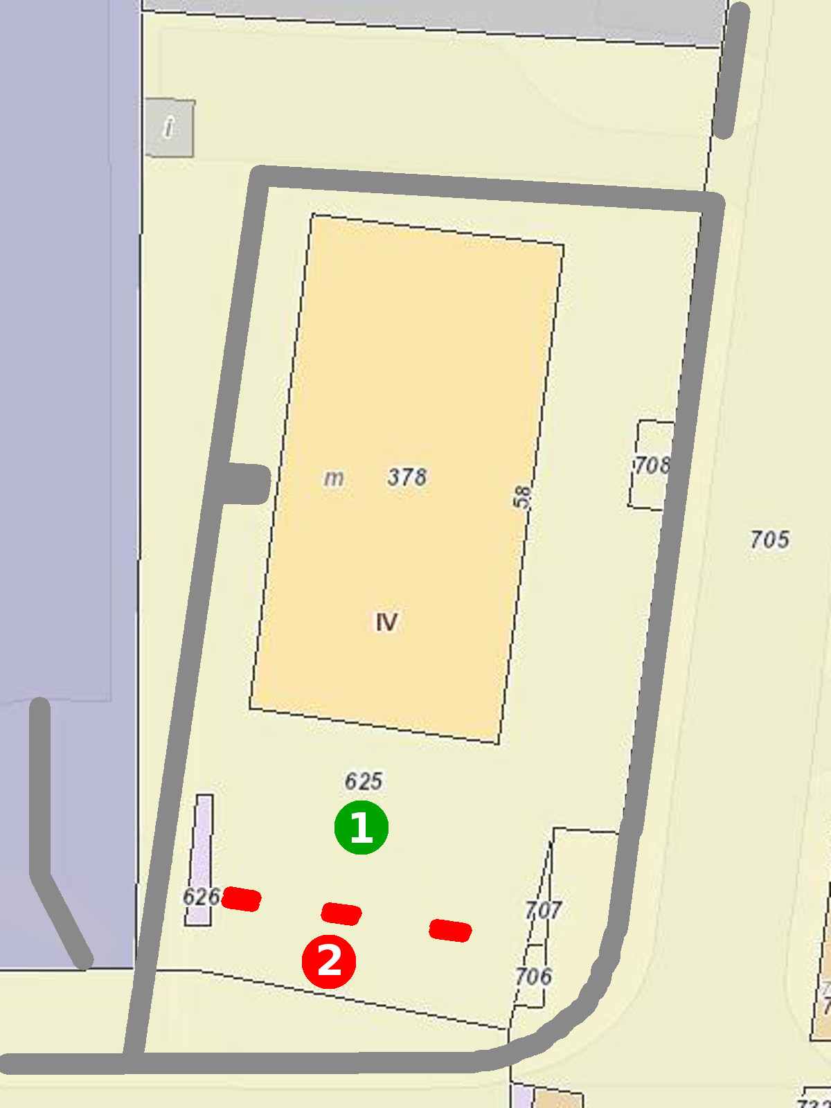 2. Zainstalowanie 2 nowych ławeczek ogrodowych wzdłuż istniejącego chodnika oraz przeniesienie istniejącej ławki znajdującej się na działce nr K-44 626.