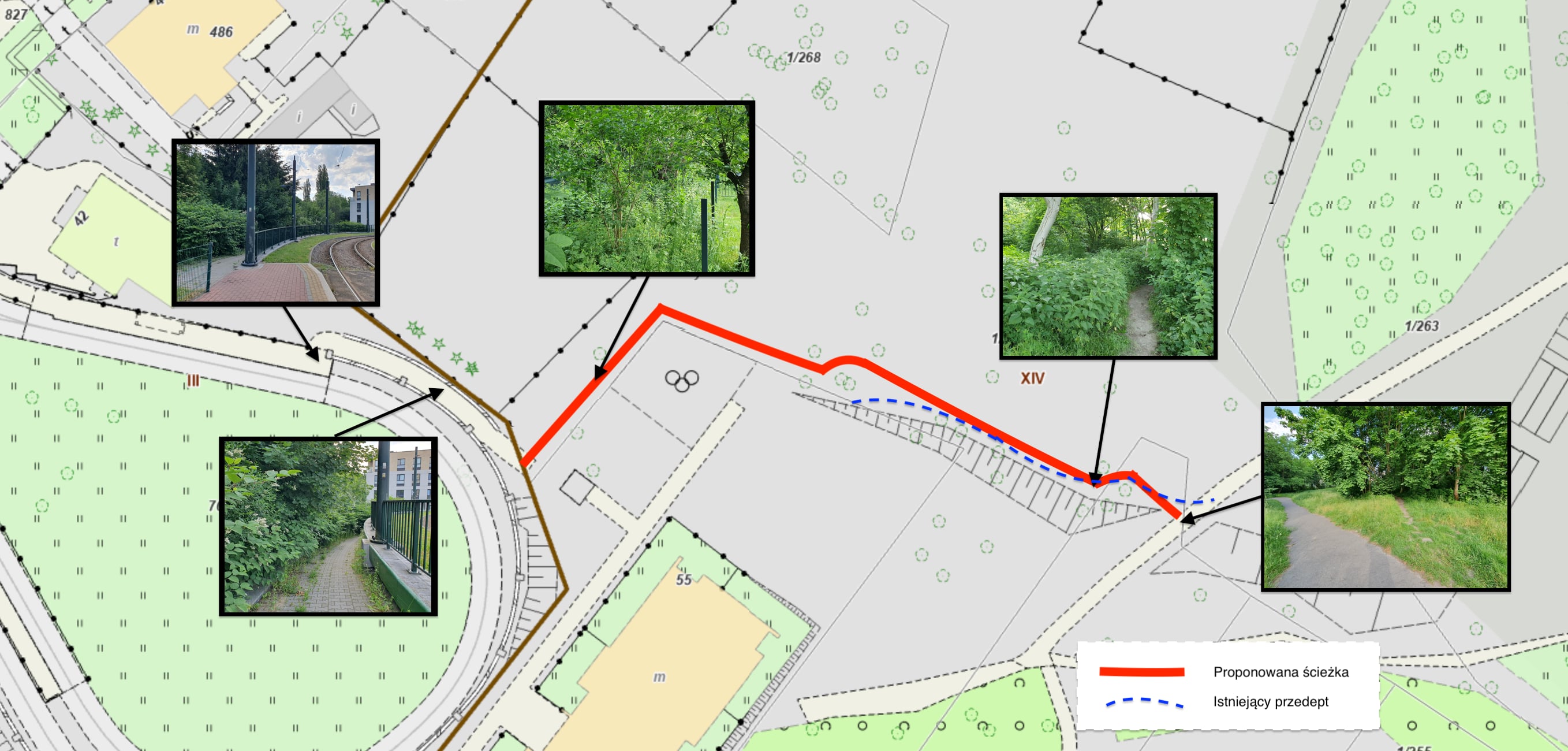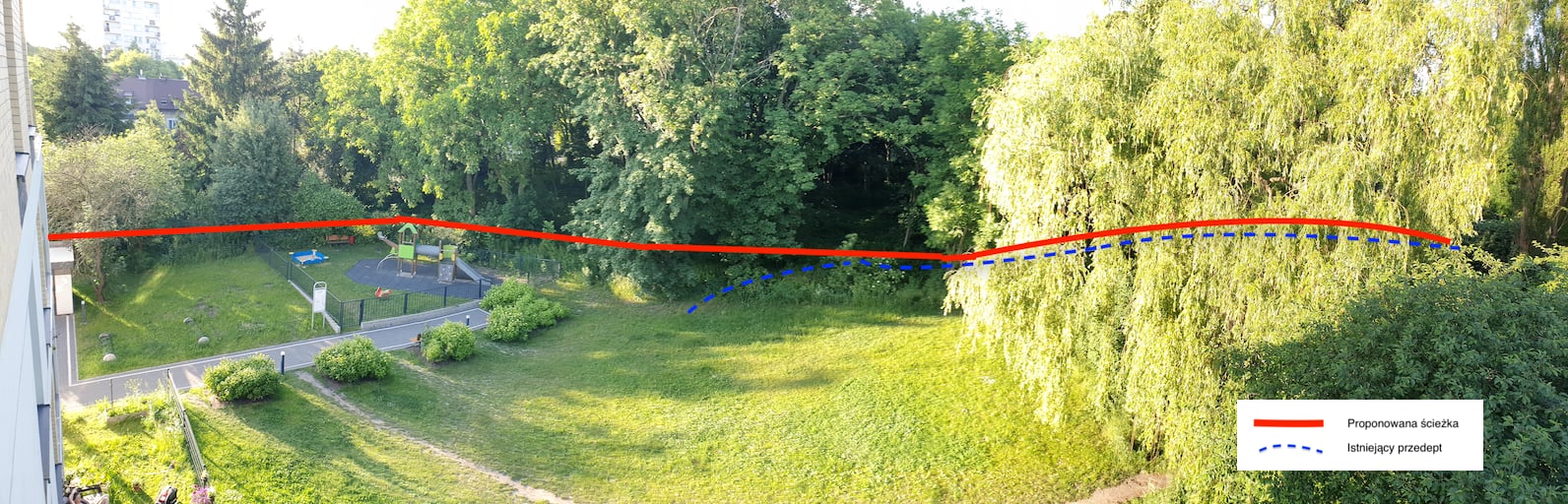 "W przeszłości istniał przedept do parku Lotników, którego fragment od alei Jana Pawła II został nawet utwardzony i oświetlony ścieżka, podczas remontu pętli tramwajowej "Wieczysta". Niestety, budowa nowego bloku przerwała jego i ciągłość, powodując utrudnienia dla mieszkańców korzystających z transportu publicznego i terenów rekreacyjnych. Projekt ma na celu przywrócenie tego połączenia poprzez wytyczenie nowej ścieżki na terenie miejskim. Dzięki temu mieszkańcy będą mogli wygodnie i bezpiecznie poruszać się między pętlą tramwajową a parkiem, co poprawi jakość życia lokalnej społeczności i zachęci do aktywności fizycznej.