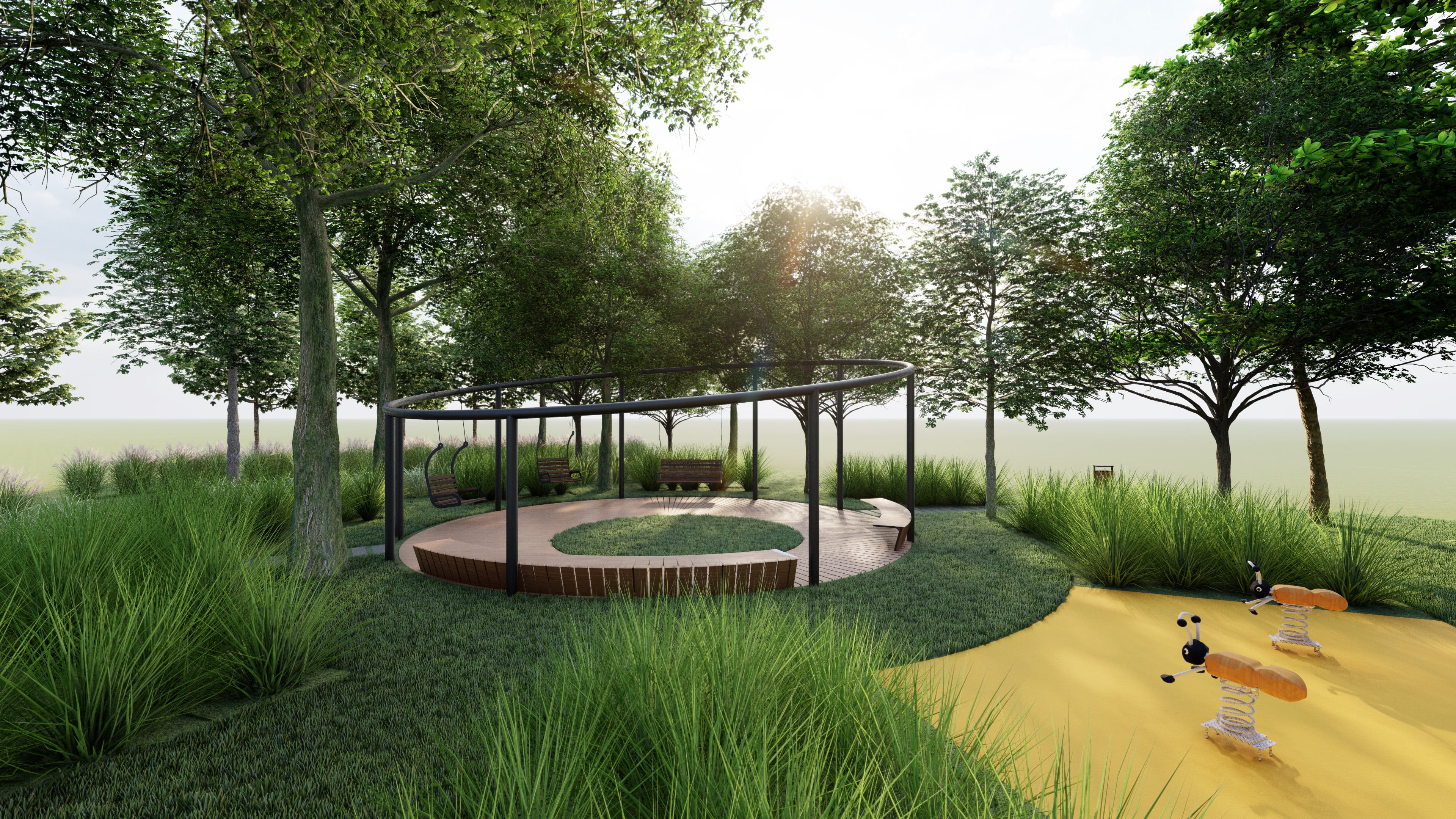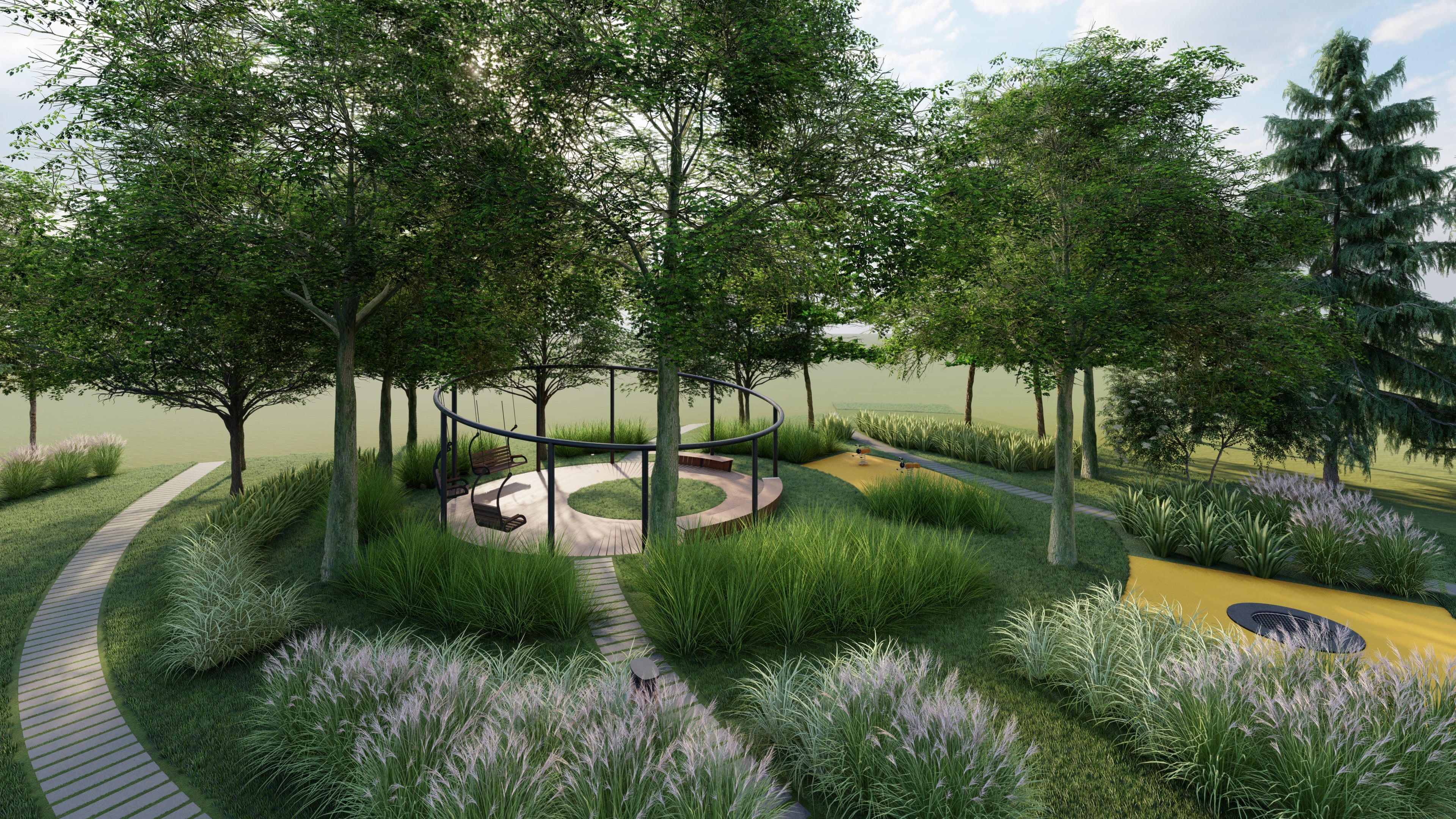 | Realizacja parku kieszonkowego lub jego części | Budowa ścieżek pieszych ułatwiających komunikację, doświetlenie nowego oświetlenia skweru, budowa miejsca do wypoczynku i integracji sąsiedzkiej, montaż małej architektury, urządzeń zabawowych oraz nasadzenia zieleni. | 2025 |