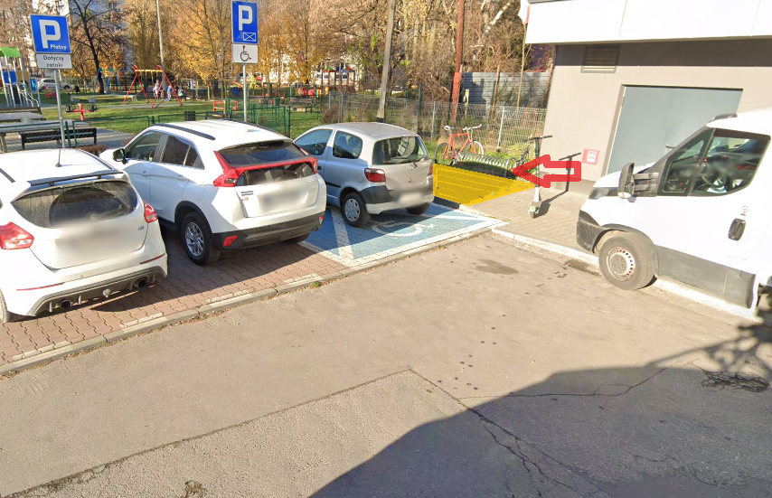 Drugą opcją jest również poprowadzenie chodnika wzdłuż parkingu oraz ogrodzenia placu zabaw, ale wiązałoby się to z koniecznością przesunięcia słupa oświetleniowego.