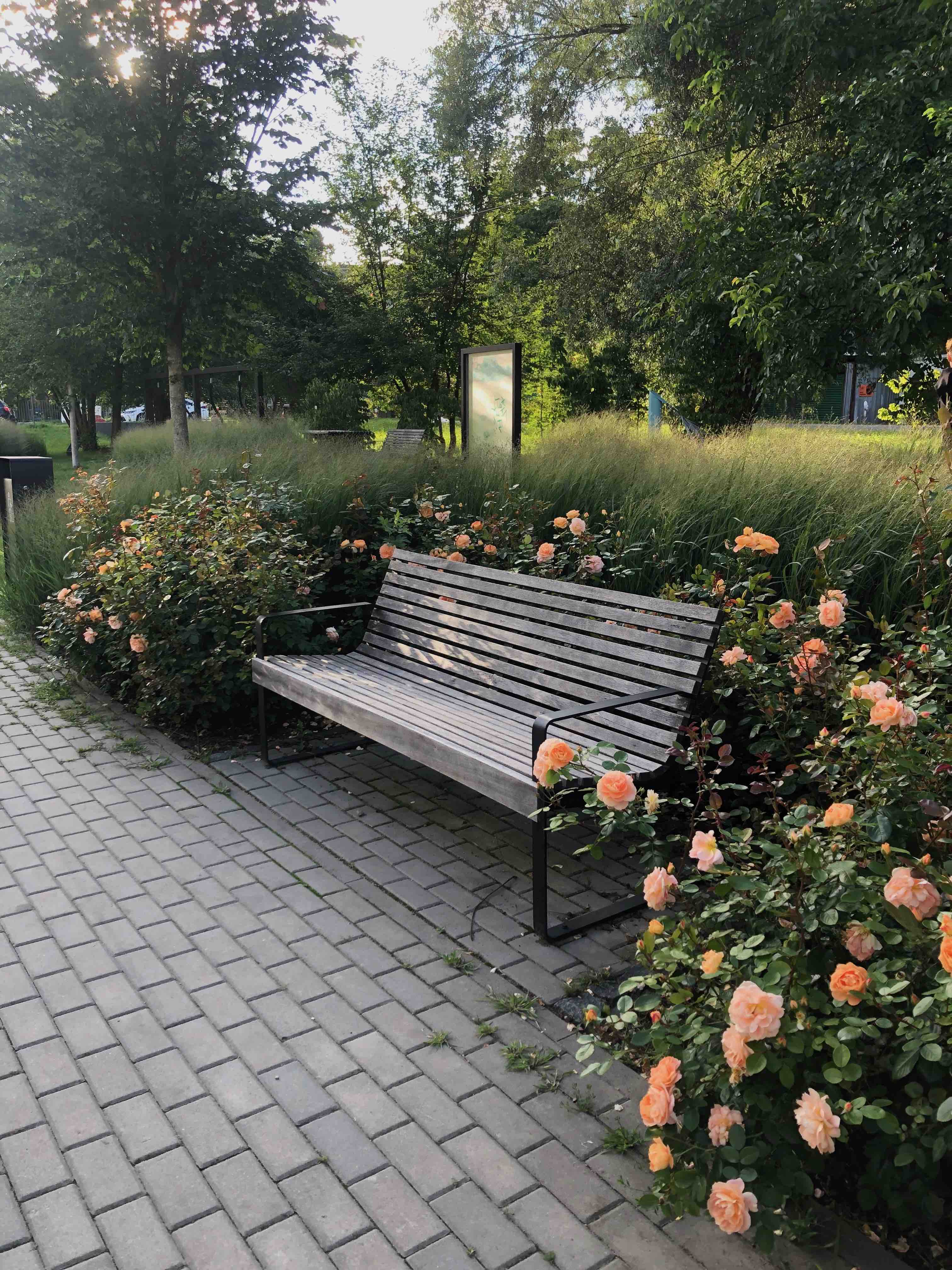 Mniejszy skwer obok przychodni aż prosi się o nasadzenie dających cień drzew i krzewów, oraz rabat z pachnącymi kwiatami - np. stworzenie mini ogrodu różanego lub kwiatowego ze strefą wytchnienia (ławki), gdzie można przysiąść i na chwilę odpocząć. Na tle budynku przychodni pięknie wyglądałyby także słoneczniki, a na razie jest tylko samotny jeden.