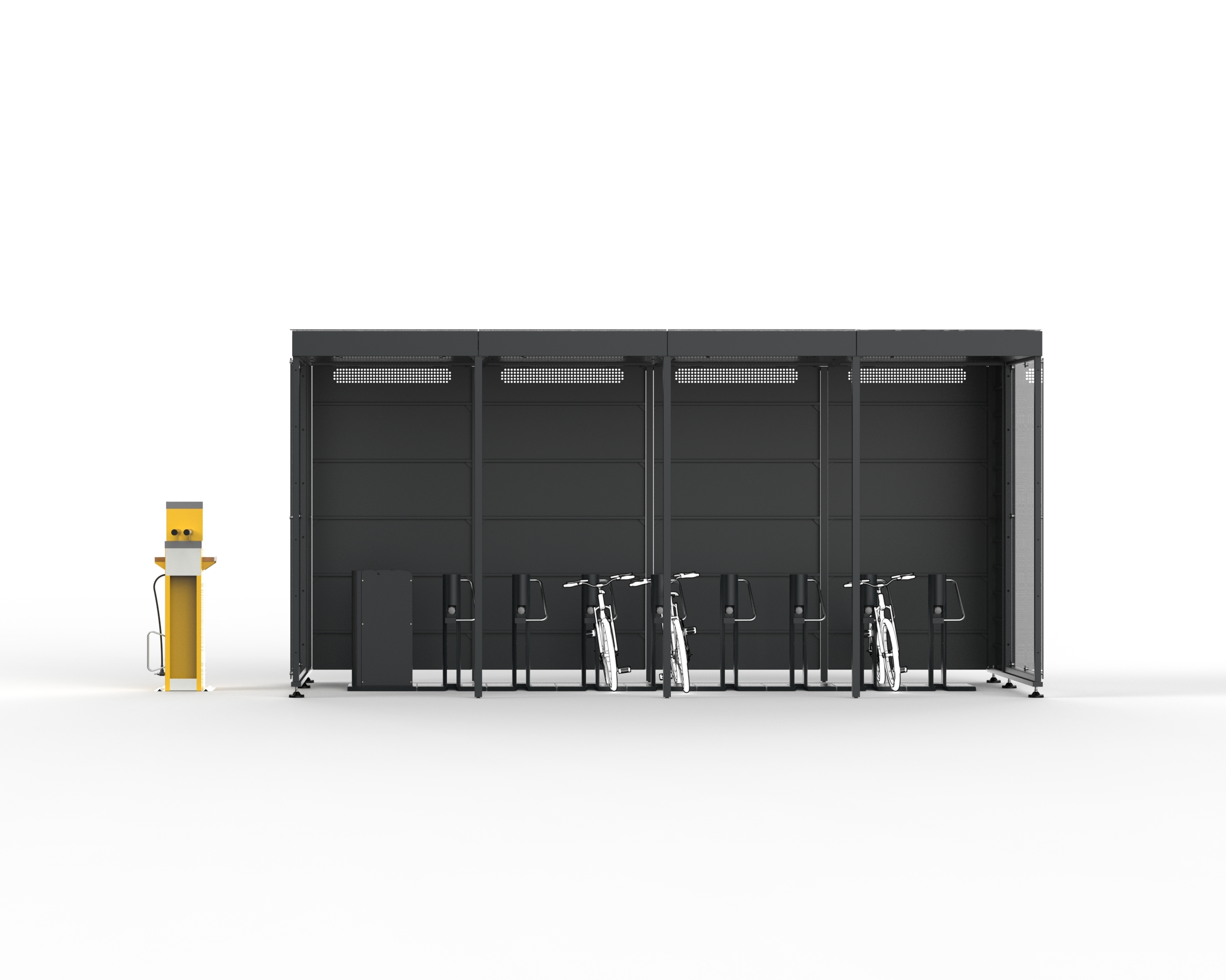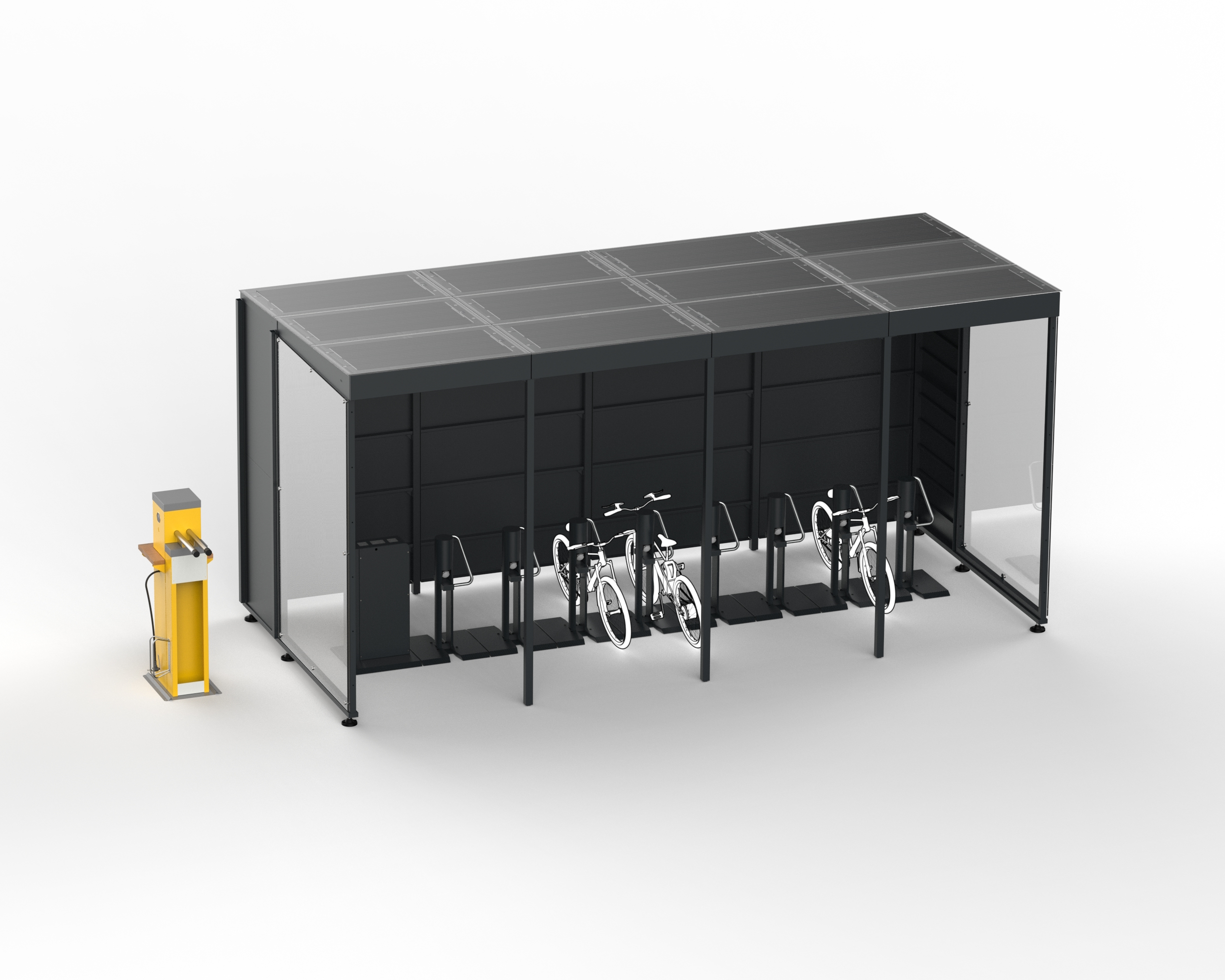Istotą projektu jest instalacja solarnej stacji ładowania rowerów elektrycznych zlokalizowanej na terenie należącym do byłego lotniska Rakowice-Czyżyny, a konkretnie w okolicy dawnej płyty postojowej – dziś terenów parkowych wokół Muzeum Lotnictwa, np. wzdłuż jednej ze ścieżek spacerowo-rowerowych położonych na zachód od głównego gmachu. Stacja ładowania byłaby w pełni zadaszona, a w jej obrębie dodatkowo znalazłby się punkt naprawy rowerów w postaci obiektu/urządzenia wyposażonego we wszystkie niezbędne rowerzystom narzędzia służące do doraźnej naprawy sprzętu oraz automatyczną pompkę z manometrem. Całość byłaby zasilana z energii słonecznej za pomocą paneli fotowoltaicznych umieszczonych na dachu wiaty. Powierzchnia dachu wiaty oraz zastosowanie paneli BIPV o wysokiej wydajności pozwoliłoby na w pełni autonomiczne działanie całej instalacji bez konieczności doprowadzenia zasilania sieciowego, co znacznie ułatwia montaż oraz wybór konkretnej lokalizacji. Stacja składałaby się z modułu centralnego umożliwiającego użytkownikowi autoryzację (rozpoczęcie) ładowania oraz 8 pojedynczych stanowisk ładujących wyposażonych w system blokujący oparty na ramieniu uchylnym z elektrozamkiem, który zapewnia bezpieczne i pewne dokowanie pojazdu. Takie rozwiązanie umożliwi mieszkańcom dogodne i bezproblemowe ładowanie swoich rowerów elektrycznych, bez zbędnych obaw o drogi sprzęt, poza domem, w trakcie choćby dłuższej wycieczki rowerowej lub podczas codziennego odpoczynku. Jednocześnie obsługiwanych będzie mogło być aż 8 pojazdów, cała stacja będzie posiadała inteligentne oświetlenie LED doposażone w czujnik zmierzchu, umożliwiające korzystanie z niej przez całą dobę. Stacja będzie dodatkowo monitorowana. Wiata będzie zapewniać dostęp jednostronny do stanowisk ładujących, ponieważ posiadać będzie zabudowane „plecy”, co umożliwi użytkownikom komfortowe korzystanie z niej nawet podczas niekorzystnych warunków atmosferycznych.