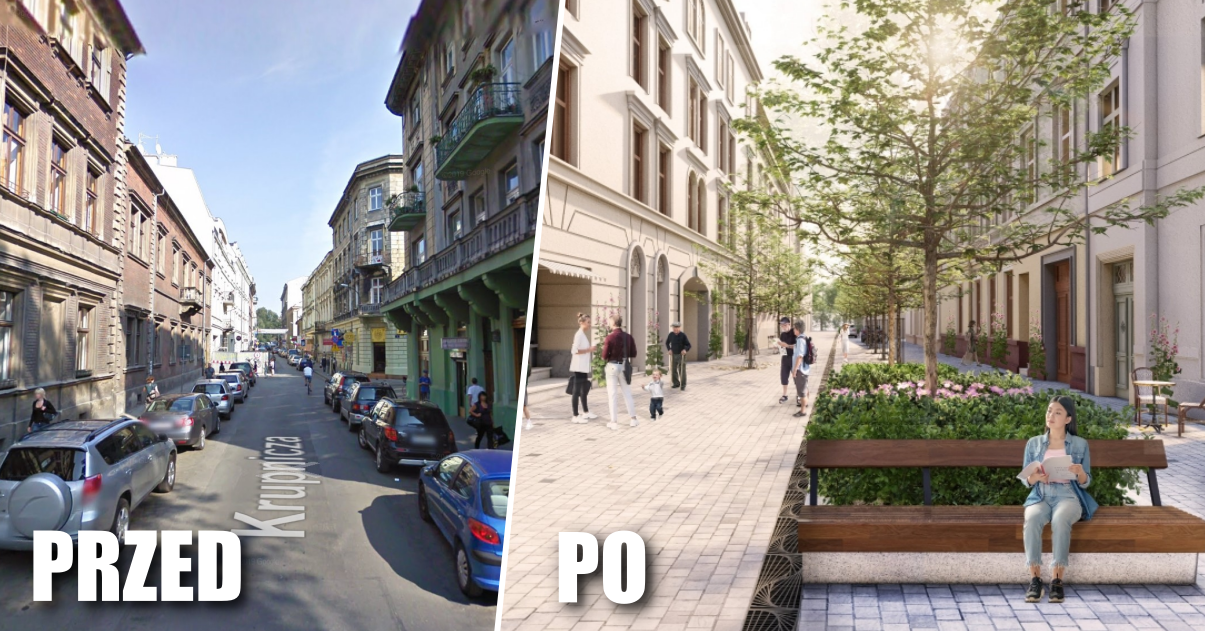 PROJEKT ZAKŁADA REMONT ULICY KRUPNICZEJ NA ODCINKU OD UL. SZUJSKIEGO DO UL. GARNCARSKIEJ CO POZWOLI ZWIĘKSZYĆ WYGODĘ I BEZPIECZEŃSTWO PIESZYCH, A TAKŻE WPROWADZIĆ ZIELEŃ.