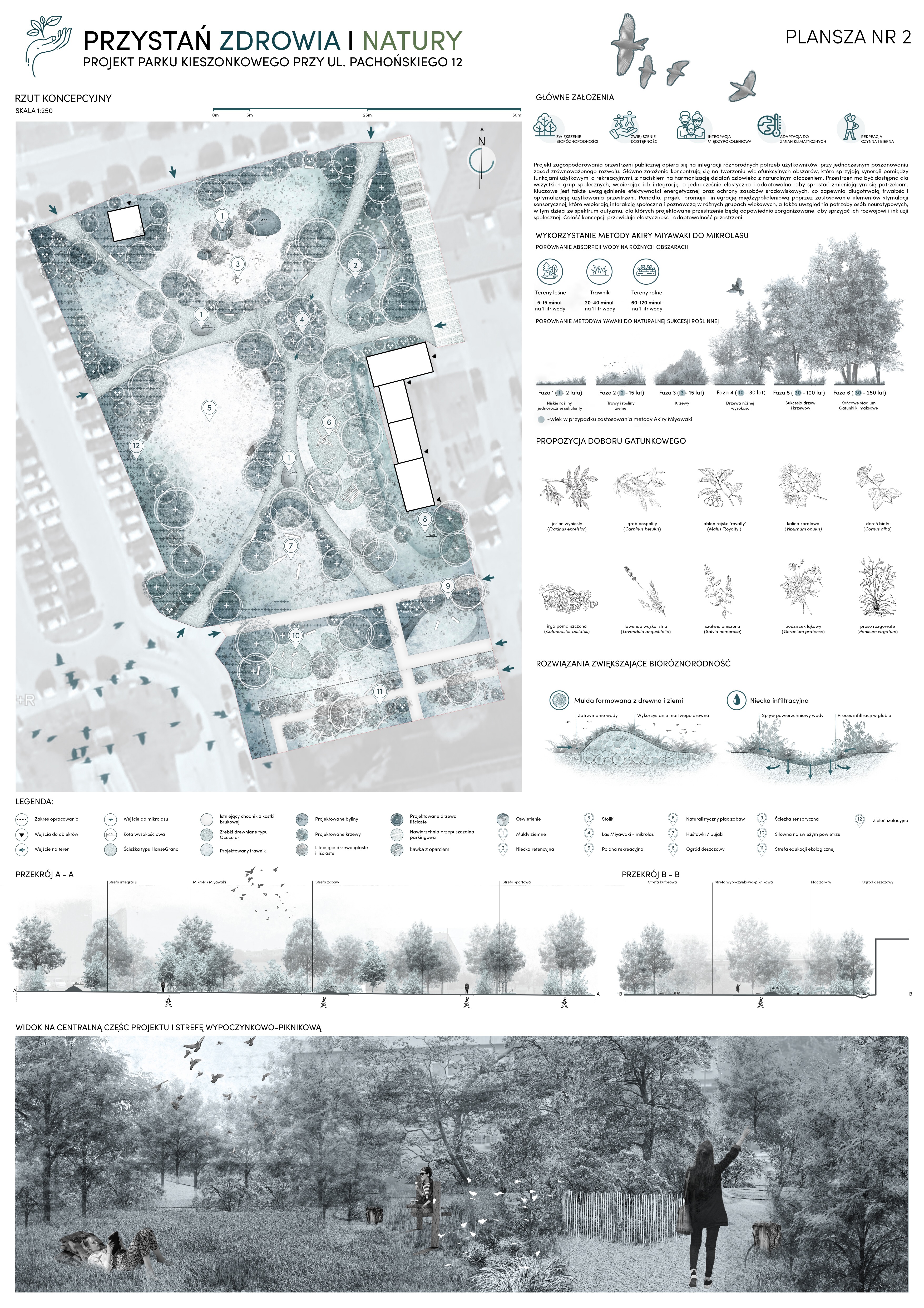 Proponowany projekt jest odpowiedzią na tą potrzebę wytchnienia dla mieszkańców oraz schłodzenia powstałej wyspy ciepła, jak również stworzenia nowego miejsca dla aktywnego wypoczynku w środku osiedla, by nie musieć zawsze odwiedzać bardziej odległych parków w okolicy. W pobliżu mamy place zabaw dla dzieci oraz boiska sportowe przy szkole nr. 58, jednak brakuje innej infrastruktury sportowej dla młodzieży oraz dla seniorów, a nawet dla dzieci ze szkoły specjalnej, by móc aktywnie spędzić czas i zadbać o zdrowie.