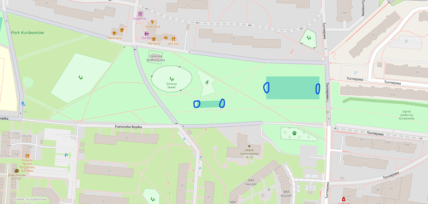 Główna lokalizacja: Park Kurdwanów, działki P-48 508/33, P-65 198/38, P-65 55/7