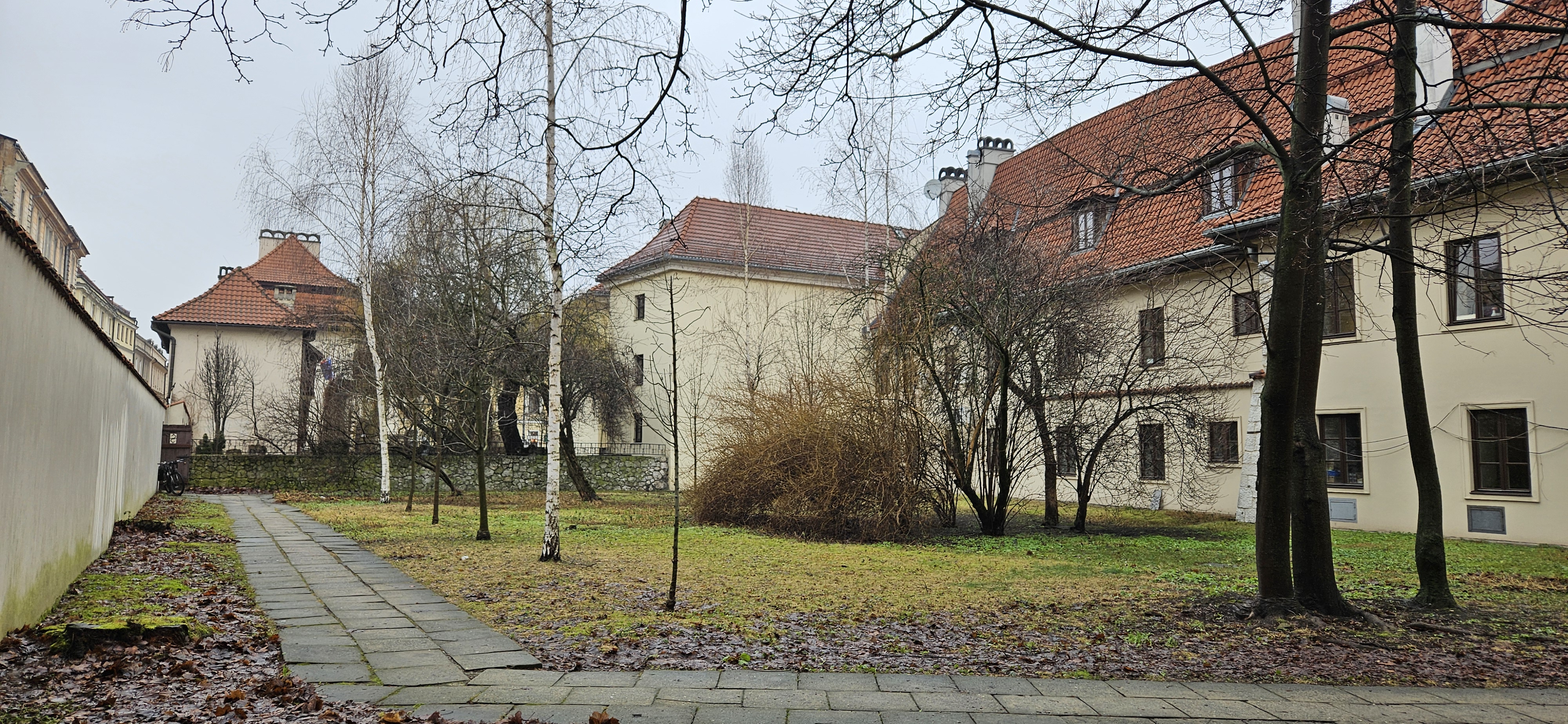 Położone między placem św. Ducha oraz ulicami: św. Krzyża, św. Marka i Szpitalną, na płaskim, ogrodzonym murem terenie, to idealne miejsce na TAJEMNICZY OGRÓD. W samym centrum a na uboczu. Przy ulicy ale schowany, dostępny wyłącznie przez wąską furtkę.