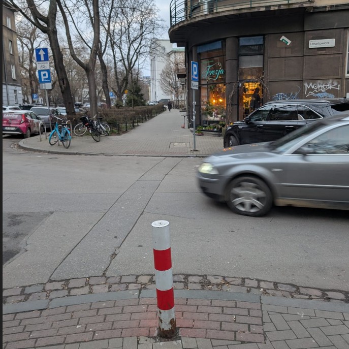Konieczne jest wyznaczenie bezpiecznego przejścia dla pieszych idących wzdłuż ul. Sienkiewicza przez ul. Lenartowicza. Teraz kierowcy nie mają obowiązku ustępowania pieszym. Widoczność jest ograniczona. Auta z impetem wjeżdżają od Alei Słowackiego.