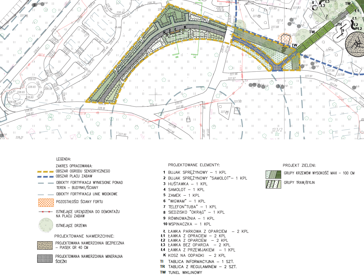 Projekt zakłada wykonanie ogrodu sensorycznego: nasadzenia zieleni, ścieżka oraz zakup i montaż niezbędnej małej architektury na podstawie dokumentacji projektowej opracowanej przez Zarząd Zieleni Miejskiej.