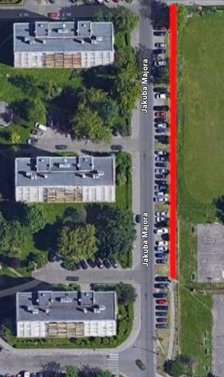 Z uwagi na zapisy zawarte w Rozporządzeniu Ministra Infrastruktury z dnia 24 czerwca 2022 r. w sprawie przepisów techniczno-budowlanych dotyczących dróg publicznych wskazujące m.in., że normatywna szerokość chodnika powinna być nie mniejsza niż 1,80 m. nie ma możliwości realizacji budowy chodnika przy ul. Majora. W omawianym projekcie budżetu obywatelskiego odległość pomiędzy parkingiem a granicą działki drogowej nr 678/1 obr. 22 Śródmieście wynosi w zależności od miejsca od 1,50 metra do 1,80 metra. Działka sąsiednia nr 917 obr. 22 Śródmieście jest własnością Gminy Kraków, podmiotem zarządzającym jest Zarząd Infrastruktury Sportowej natomiast jest ona objęta umową dzierżawy na rzecz Klubu Sportowego „Prądniczanka”. Wnioskowana budowa chodnika nie jest możliwa do realizacji tylko i wyłącznie na działce nr 678/1 obr. 22 Śródmieście z uwagi na szerokość pomiędzy parkingiem a granicą działki drogowej. Z uwagi na głębokość istniejącej zatoki postojowej (ok. 4,00-4,50 m), tj. mniejszej niż normatywna długość miejsca postojowego prostopadłego tj. 5 m, szerokość chodnika powinna być stosownie zwiększona, by nie ograniczać użytkowej szerokości chodnika z uwagi na „zwis” pojazdu (aktualnie obrys pojazdu pozostaje poza zatoką). Należy zauważyć, że chodnik powinien posiadać oświetlenie, w związku z tym zajętość terenu pod inwestycję musi zostać stosownie zwiększona. Celem realizacji zadania zgodnie z wymaganymi szerokościami należałoby usunąć drzewa lub przesunąć ogrodzenie terenów sportowych, tak aby chodnik był ogólnodostępny i nie przebiegał przez teren Klubu. Po zrealizowaniu zadania chodnik zostałby przekazany w zarząd ZDMK a teren objęty dzierżawą wyłączony z umowy dzierżawy Klubu. Zarząd Klubu „Prądniczanka” nie wyraża zgody na zaproponowane zmiany.