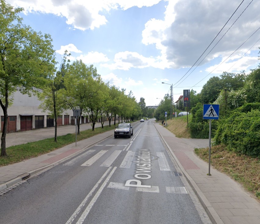 Główna lokalizacja: Przejście dla pieszych przy przystanku Powstańców Garaże 01 i 02.