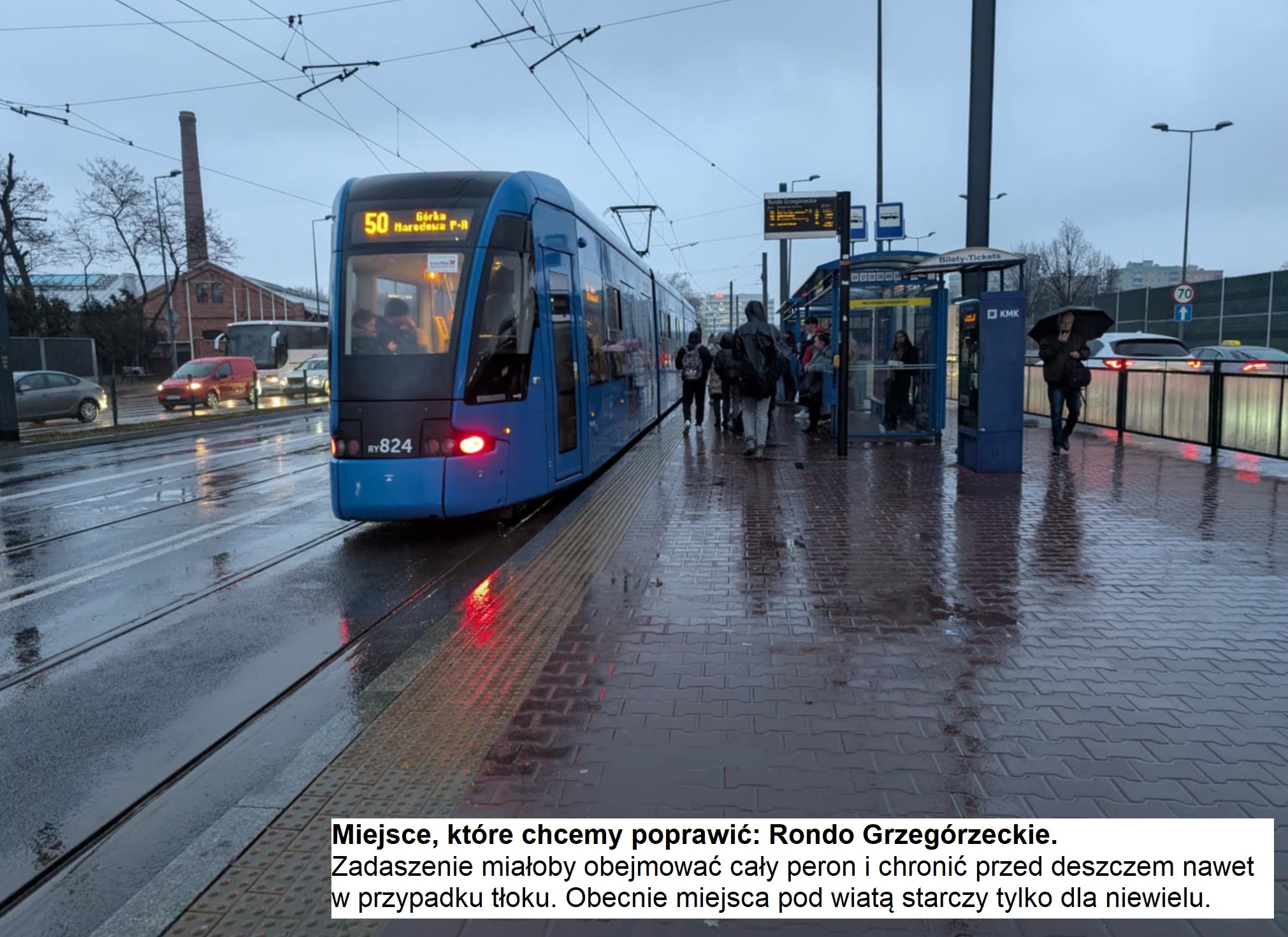 Rondo Grzegórzeckie to przystanek o dużej liczbie pasażerów oraz jest ważnym węzłem przesiadkowym. Projekt poprawi warunki pasażerów oczekujących na przystanku.
