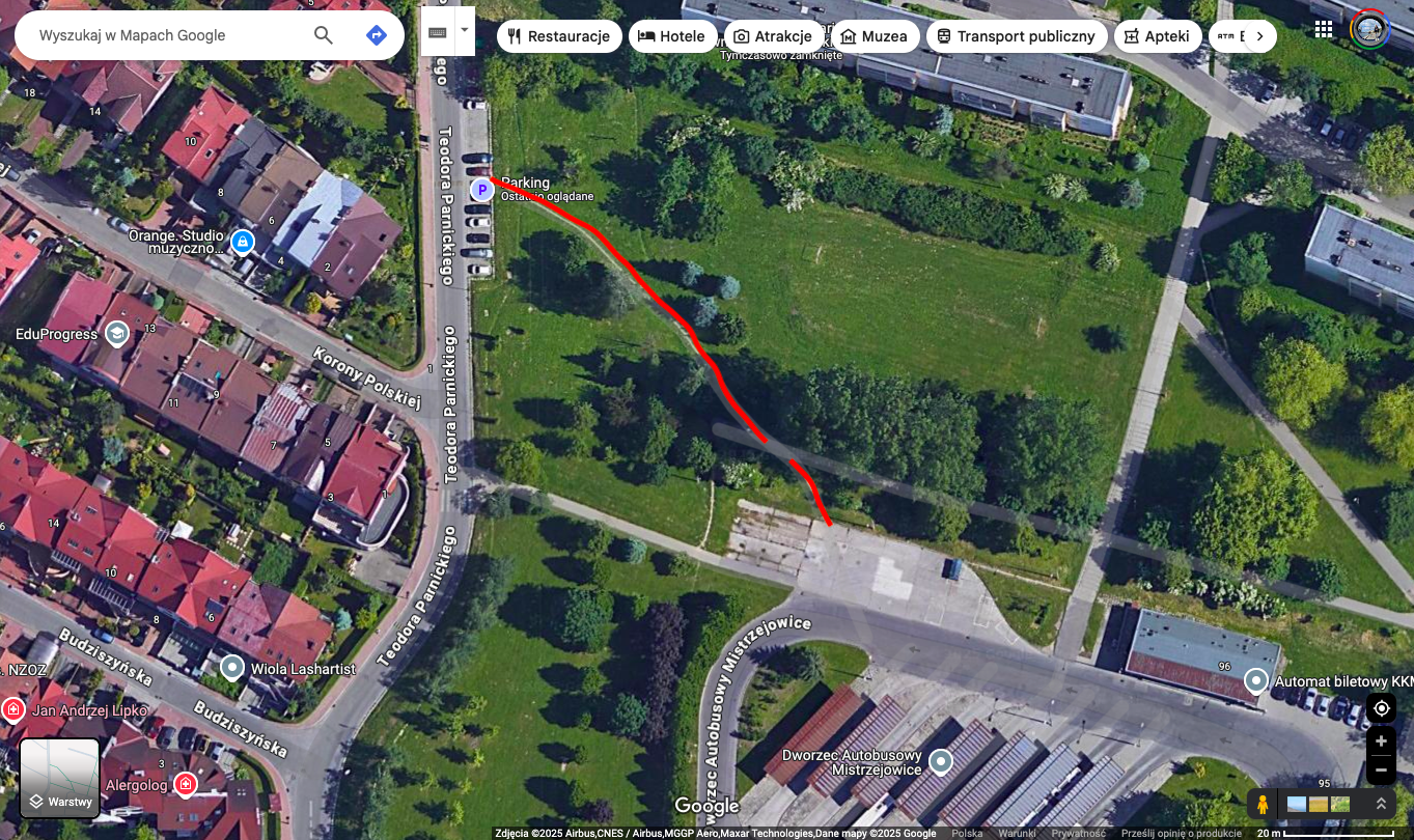 Celem projektu jest budowa brakującego odcinka chodnika prowadzącego od parkingu przy ul. Teodora Parnickiego do pętli autobusowej "Mistrzejowice".