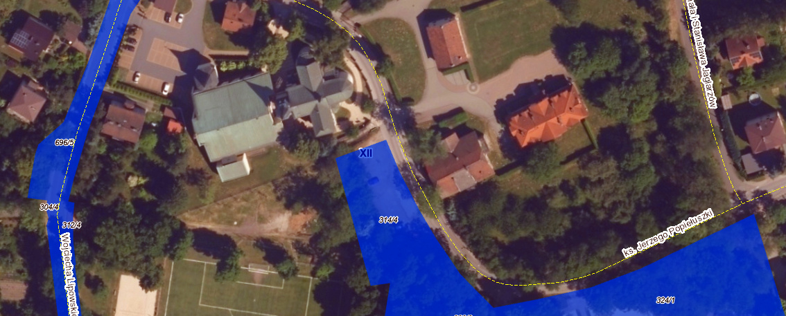 Ponadto w rejonie planowanej inwestycji została zawarta umowa z prywatnym inwestorem nr 1099/ZDMK/2019 z dnia 17 października 2019 r. w ramach której w ZDMK procedowana jest dokumentacja projektowa dla przebudowy ul. Popiełuszki m.in. w zakresie budowy chodnika od ul. Weigla do terenu kościoła. Ze względu na: parametry istniejącego pasa drogowego ul. Popiełuszki, konieczności zapewnienia przejezdności dla pojazdów komunikacji miejskiej oraz ochronę istniejącego drzewostanu rozważane jest również wejście z ciągiem pieszym na przyległe do ulicy tereny Gminy Kraków. W związku z powyższym istnieje duże prawdopodobieństwo wejścia w teren działki 314/4 obr. 101 Podgórze. Na dzień dzisiejszy brak jest ostatecznego rozwiązania projektowego, które określałoby ostateczną zajętość terenu pod budowę chodnika.