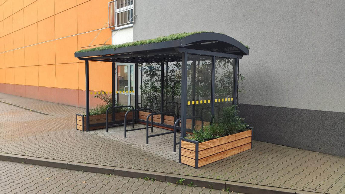 - Poprawa komfortu użytkowników stojaków rowerowych poprzez ochronę rowerów przed deszczem i słońcem.