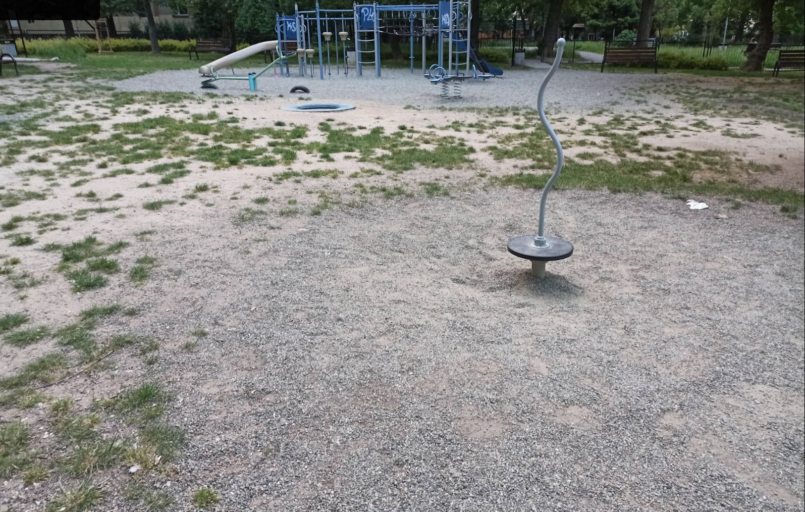 Wymianę podłoża z ostrego żwiru na bezpieczniejszy, miękki piasek lub nawierzchnię EPDM.