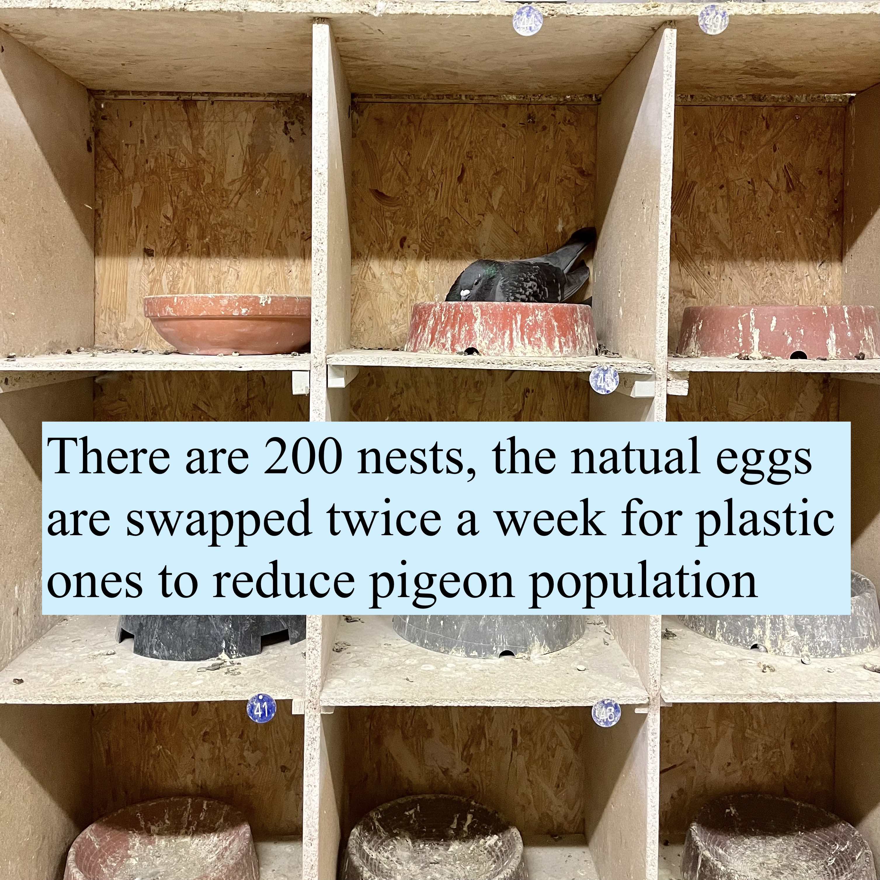 1. Założenie gołębnika, w których w kontrolowany sposób będziemy podmieniać jaja na plastikowe. Metoda ta jest stosowana w wielu miastach europejskich od lat. Jeden gołębnik umożliwia podmianę ok. 1 700 jaj rocznie, co pozwala zmniejszyć populację gołębi w etyczny sposób. Dodatkowo gołębniki pomogą przenieść stada z miejsc w mieście, gdzie obecność tych ptaków jest szczególnie uciążliwa, jednocześnie ograniczając ich rozmnażanie, które w miastach trwa cały rok ze względu na wyższe temperatury zimą i całonocne oświetlenie. Podobne rozwiązania funkcjonują już w innych europejskich miastach, ograniczając rozmnażanie gołębi i redukując akty agresji wobec tych ptaków. Relacja z gołębnika w Dreźnie znajduje się w Linku 1 na dole tego opisu. Popularne staje się obecnie stawianie uli na dachach biurowców – podobne podejście można zastosować do gołębników. We współpracy z weterynarzami będziemy mogli podmieniać jaja, a przy okazji umożliwić naukowcom badania liczebności populacji oraz najczęstszych chorób gołębi.