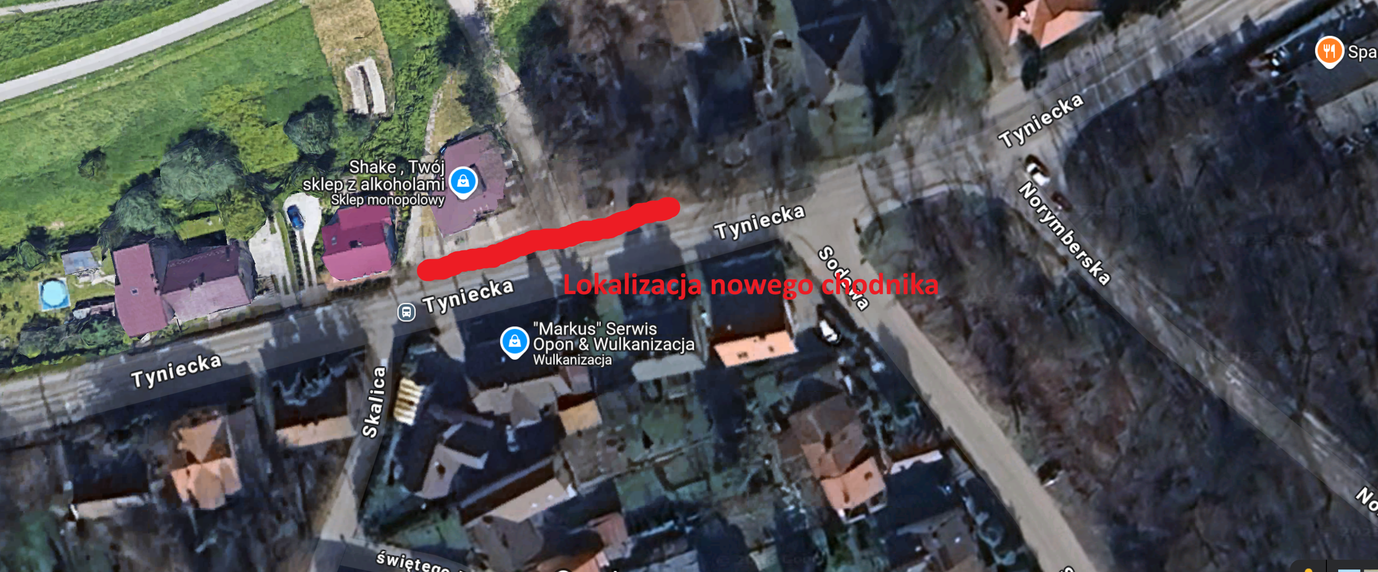 Projekt dotyczy wybudowania odcinka chodnika na ulicy Tynieckiej na odcinku między numerami Tyniecka 48 i Tyniecka 50 na całej długości zatoczki.