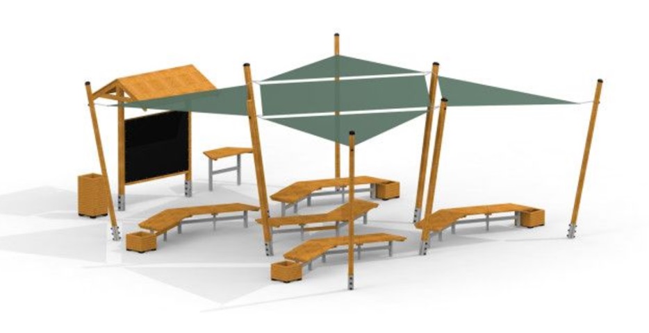 Architektura: Każda klasa zostanie zaprojektowana jako miejsce do nauki na świeżym powietrzu, wyposażona w ekologiczne meble, takie jak drewniane ławki, stoły oraz tablice do pisania.
