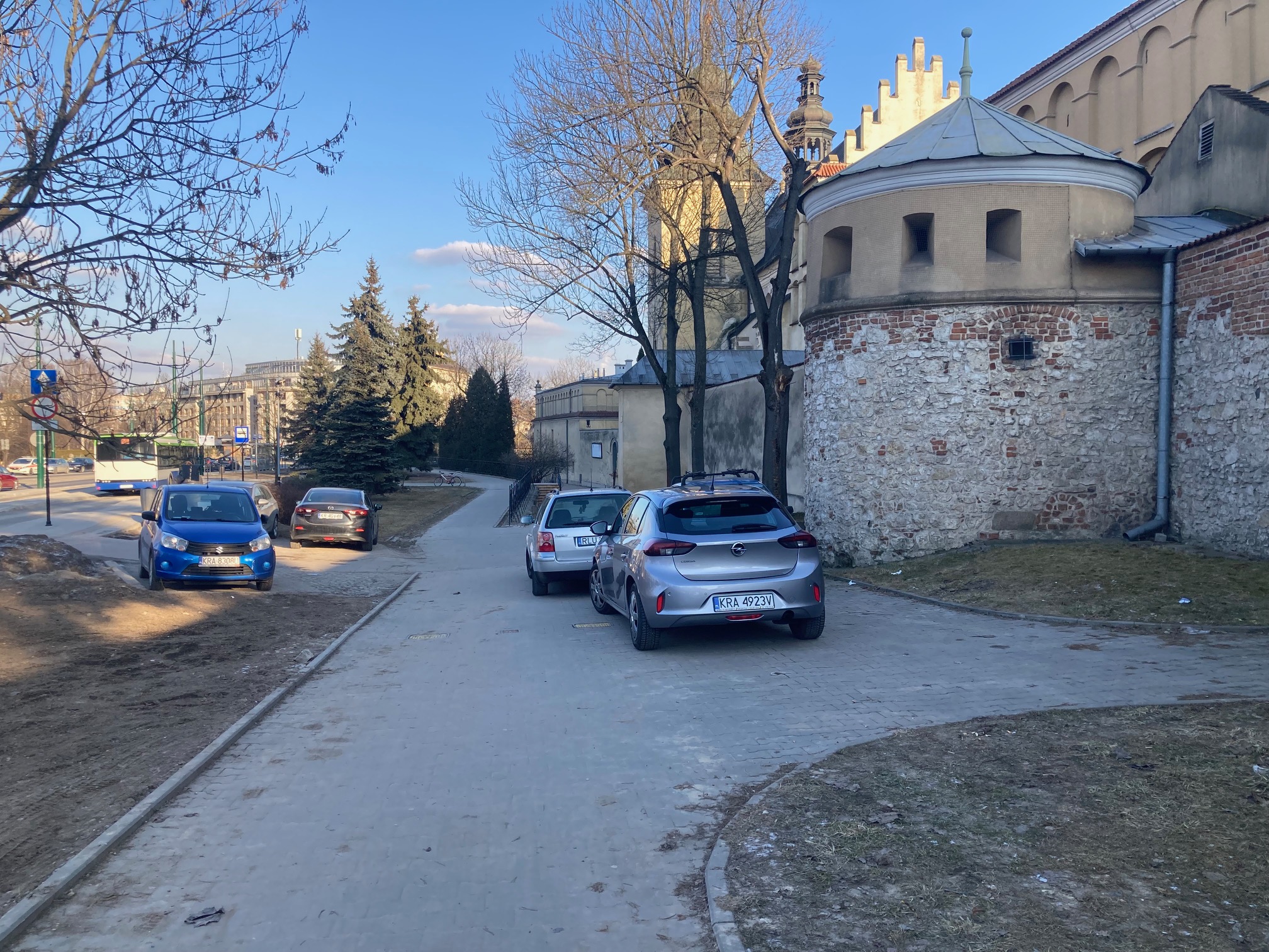 Zachowamy i wyeksponujemy stary wapienny bruk pod murami klasztoru, ale zrujnowane nawierzchnie betonowe i asfaltowe zamienimy na nowe. Wyeksponujemy zawężony obecnie wjazd do klasztoru i piękną, zwieńczoną kamiennym łukiem bramę, zachowamy utwardzoną powierzchnię historycznego ciągu procesyjnego dookoła kościoła i pamiątkę Misji.