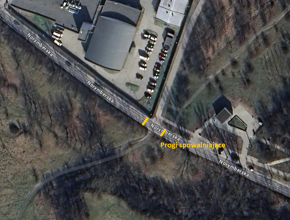 Projekt zakłada montaż 2 szt. listwowych progów spowalniających na ulicy Norymberskiej przed i za skrzyżowaniem z ulica Zielną.