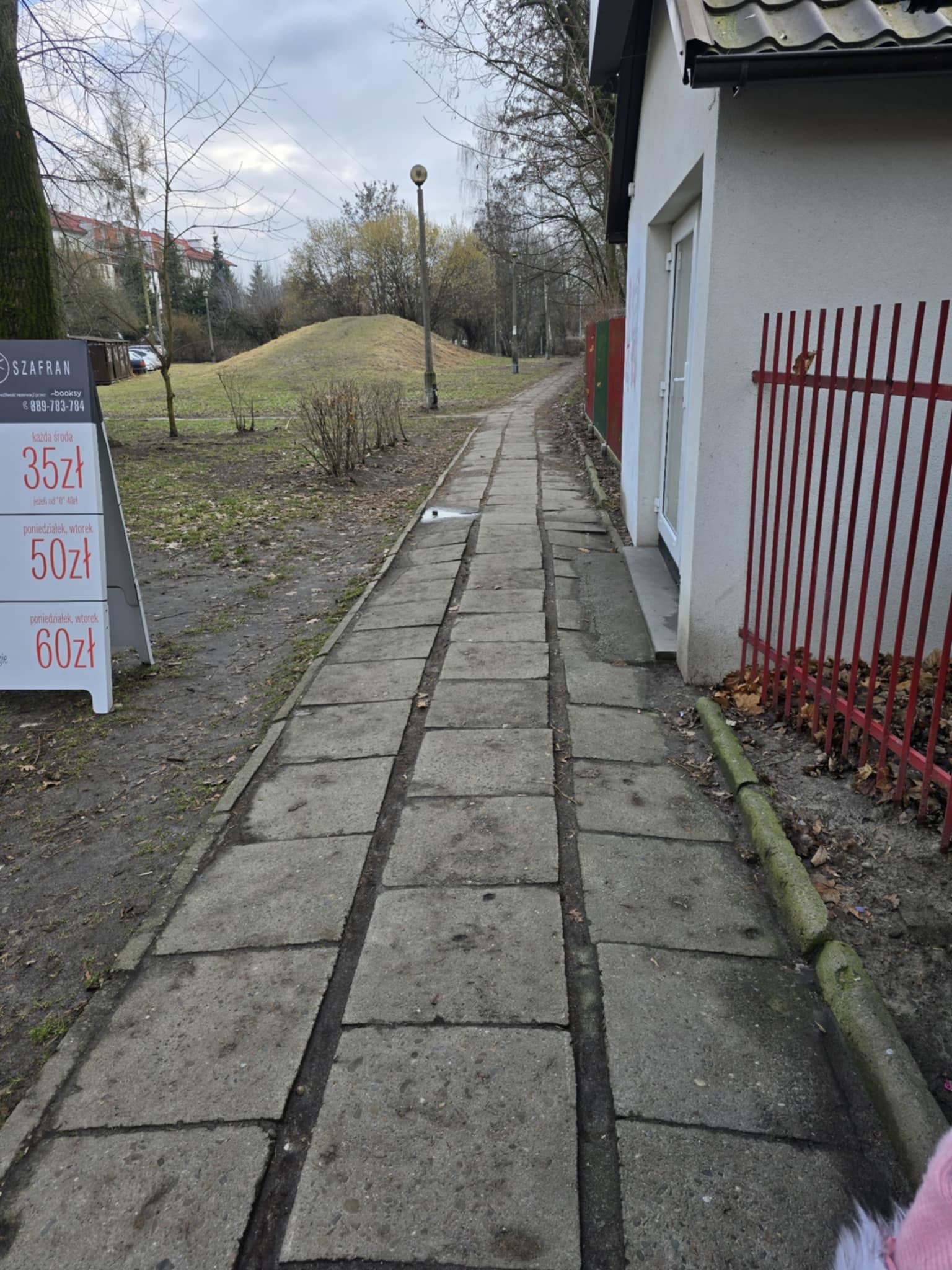 Choć z uwagi na własności terenu nie da się zrobić całego ciągu pieszego przy górce saneczkowej, to odcinek należący do miasta i możliwy do zrobienia, znajduje się w zdecydowanie najgorszym stanie technicznym.