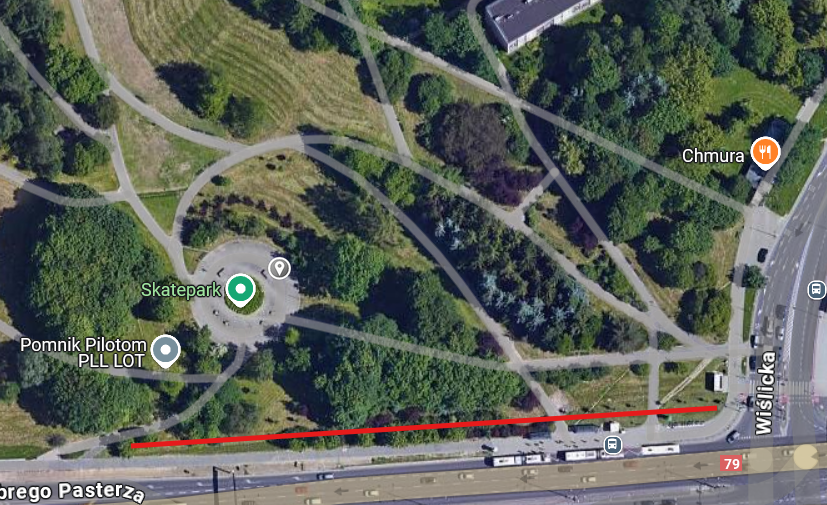 Ekrany, choć mogą częściowo redukować hałas, stanowią element obcy dla krajobrazu parkowego. Wprowadzają silną barierę wizualną i przestrzenną, izolując park od otoczenia i zaburzając jego otwarty, dostępny charakter. Co więcej, doświadczenie pokazuje, że ekrany tego typu utrudniają komunikację pieszą i rowerową, ograniczają widoczność i tworzą wrażenie zamkniętej, odseparowanej przestrzeni.