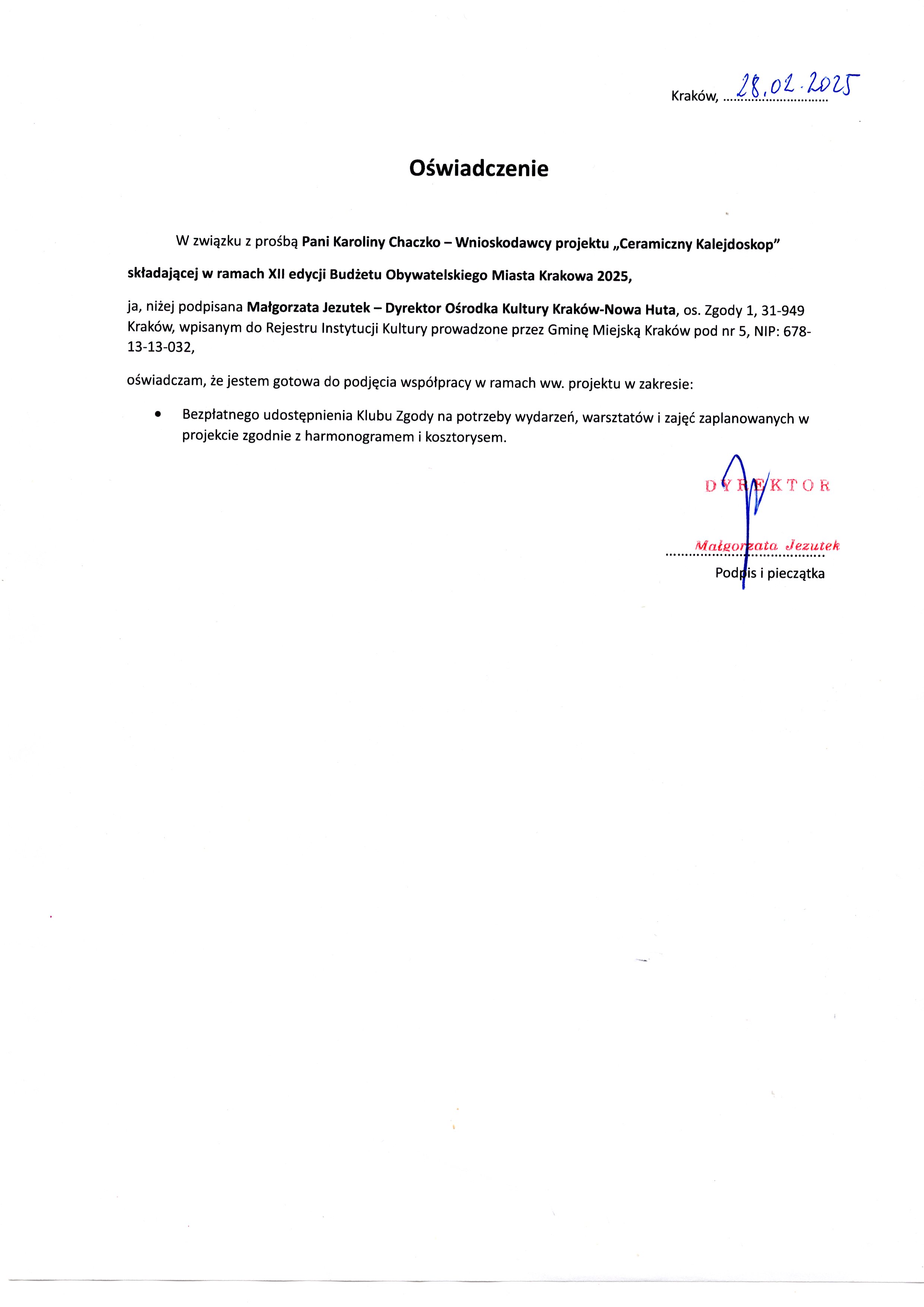 | Warsztaty | Zajęcia ceramiczne (wynagrodzenie prowadzącej, materiały, wypał) | 10 000,00 PLN |