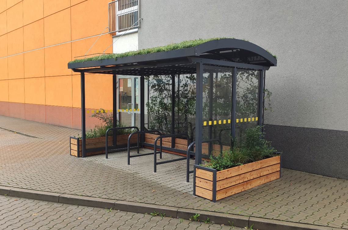 Zielona wiata rowerowa przy SP 98.