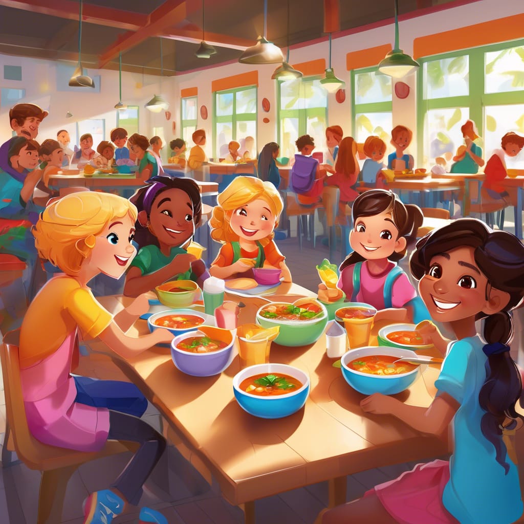 Codziennie, podczas przerwy obiadowej, uczniowie otrzymują talerz gorącej, pożywnej zupy, przygotowanej zgodnie z zaleceniami dietetyków, aby dostarczyć niezbędnych składników odżywczych.