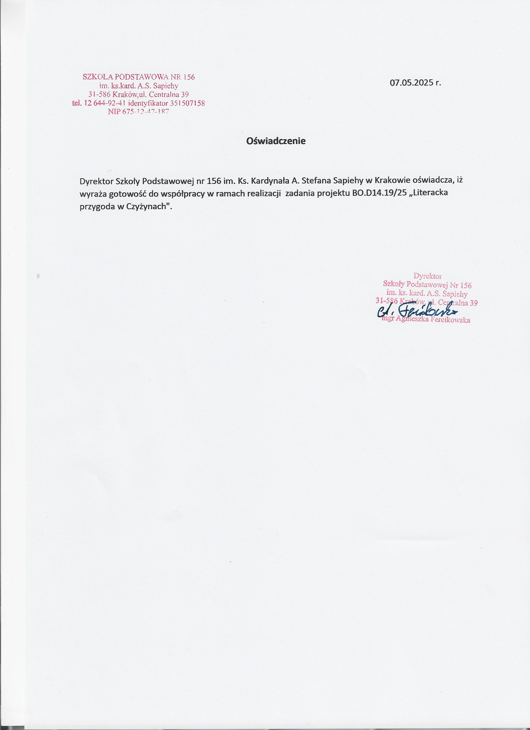 Czyżyny oraz zakup nowych książek do biblioteki szkolnej SP nr 156. Celem jest