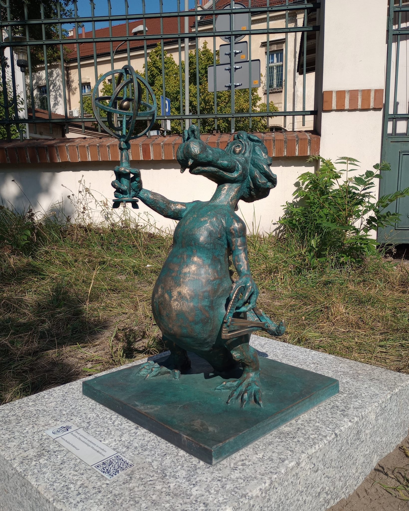 2. Smok Decjusz - 50.065844, 19.871810 - działka 110/1, obręb 9, jednostka ewidencyjna Krowodrza: na terenie Parku Decjusza, od strony ulicy Królowej Jadwigi, przy ścieżce na skraju trawnika obok smoczego skweru.