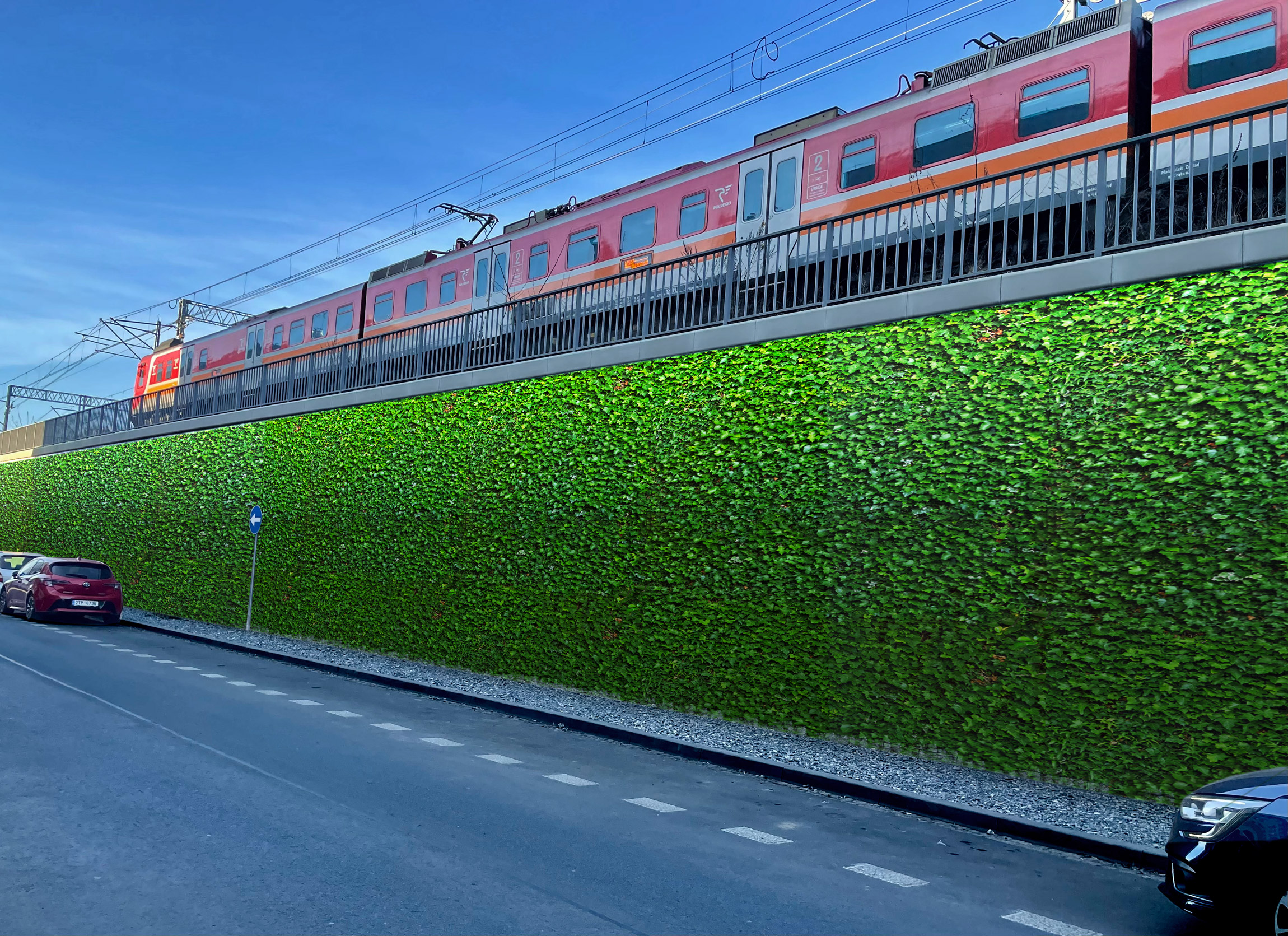 Nasadzenia zimozielonych roślin pnących przy ulicy Halickiej i w przyszłym Parku Kolejowym. Pnącza zazielenią, upiększą i dotlenią wskazane w projekcie obszary.