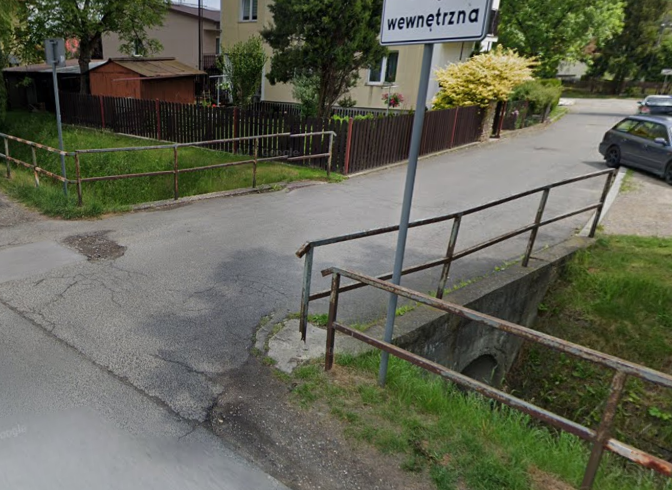 Wymiana starych zniszczonych barier ochronnych odgradzających głęboki rów potoku od ruchu pieszego i samochodowego na ul. Korzeniaka.