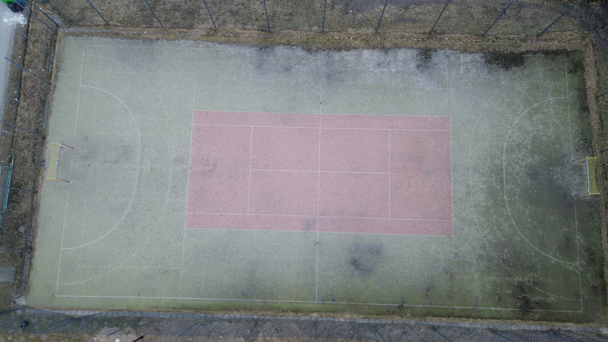Wymagane prace: przygotowanie terenu (przy wykorzystaniu obecnej nawierzchni, bez konieczności wykonania podbudowy, ułożenie nawierzchni wraz z systemem drenażu, modernizacja piłkochwytów, montaż ławek oraz bramek, malowanie linii.