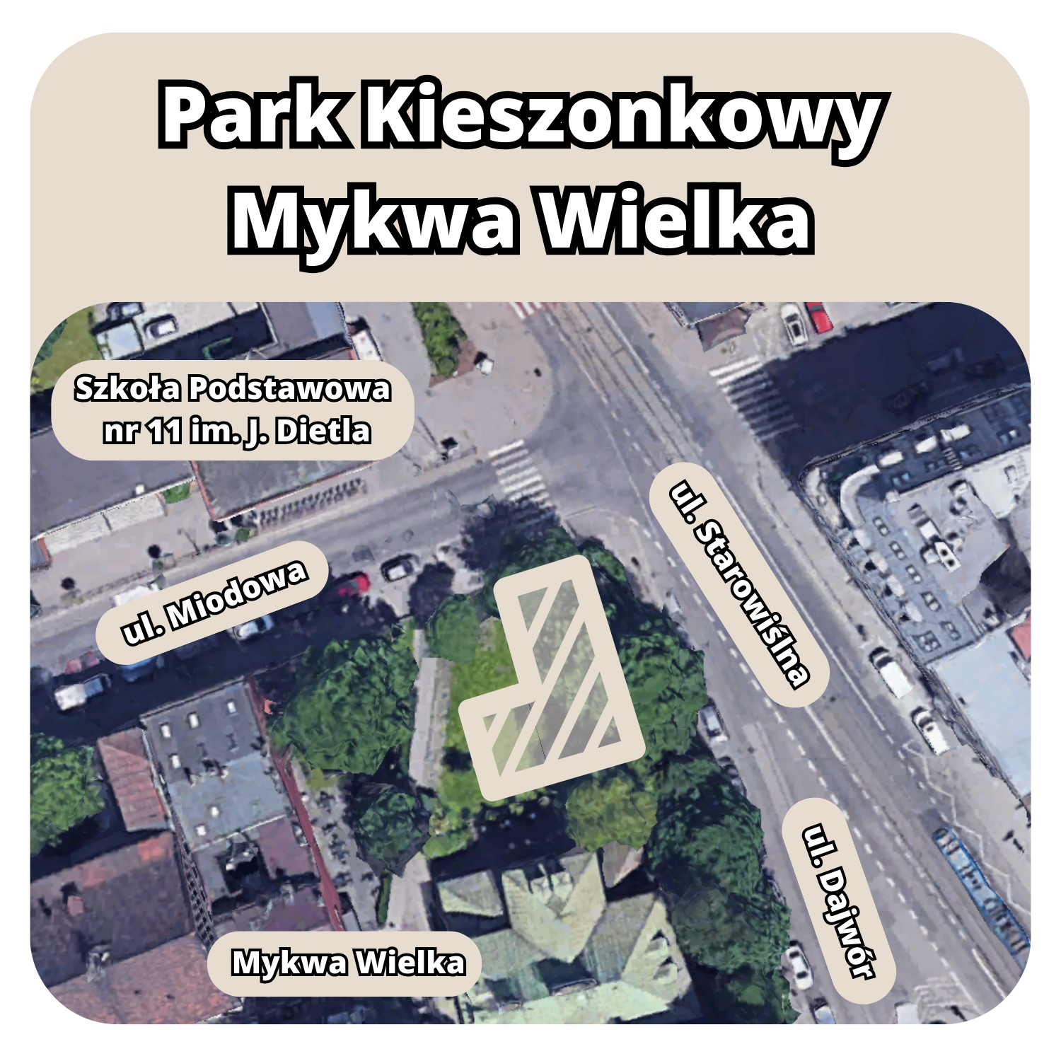 Utworzenie Parku Kieszonkowego na Kazimierzu w sąsiedztwie Mykwy Wielkiej i SP nr 11 (w okolicy skrzyżowania ul. Miodowej i ul. Starowiślnej). Projekt przewiduje utworzenie stref dla dzieci, sportu i wypoczynku w ciszy
