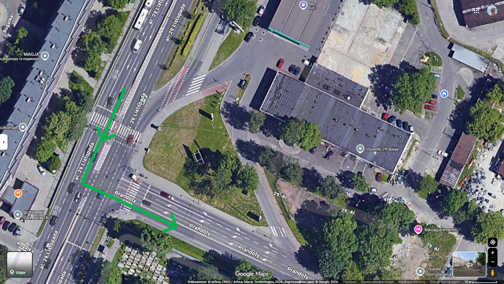 Bezpieczny lewoskręt z al. 29 Listopada w ul. Prandoty