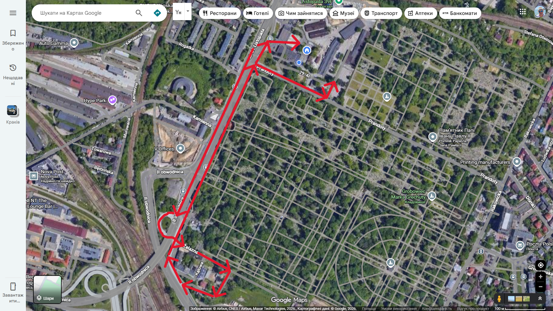 - jazdy aż do Ronda Janusza Kurtyki przy Dworcu Głównym w celu zawrócenia,